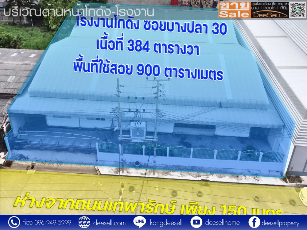 ขายถูกโกดัง บางพลี ใกล้ถนนเทพารักษ์ 200 เมตรในซอยบางปลา 30 ถนนกว้างประมาณ 10 เมตร รองรับรถขนาดใหญ่ เนื้อที่ 0-3-84 ไร่ (384 ตารางวา) พื้นที่ใช้สอย 900 ตารางเมตร ติดต่อ กรกวี เสรีพุกกะณะ (ก้อง) โทร : คลิกเพื่อดูเบอร์โทรติดต่อ Line ID : kongdeesell, @deesell ประเภท : โรงงาน โกดัง ที่อยู่ : 46/58 ซอยบางปลา 30 ตำบลบางปลา อำเภอบางพลี สมุทรปราการ 10540 แผนที่ : https://maps.app.goo.gl/V26LYCE7bUgZ1U2v8 ราคารวม 18,000,000 บาท รายละเอียดทรัพย์ - โกดังอยู่บนที่ดิน 2 แปลง เนื้อที่ 0-3-84 (384 ตารางวา) - อาคารอยู่ในซอยบางปลา 30 ใกล้ถนนเทพารักษ์ ประมาณ 200 เมตร - ถนนด้านหน้าอาคารกว้างประมาณ 10 เมตร รองรับรถบรรทุกขนาดใหญ่ และรถพ่วง - อาคารโรงงานเป็นอาคารชั้นเดียว มีพื้นที่ใช้สอย 900 ตารางเมตร โครงสร้างแข็งแรง สภาพดี ได้รับการดูแลรักษาอย่างดี อายุการใช้งานประมาณ 20 ปี - ภายในอาคารโรงงาน บางส่วนเป็นทั้งสำนักงาน ติดตั้งเครื่องปรับอากาศอย่างดี - สภาพแวดล้อมอาคารเป็นหลังคาสูง มีช่องระบายอากาศโดยรอบ ภายในจึงปลอดโปร่ง - พื้นโรงงานเป็นพื้นคอนกรีตขัดมัน สภาพดีแข็งแรง ไม่ทรุดร้าว - ประตูเข้า-ออกโรงงานหันไปทางทิศตะวันเหนือ - เดินทางสะดวก ทำเลดี ใกล้ถนนกิ่งแก้ว ถนนบางนา-ตราด และจุดขึ้น-ลง มอเตอร์เวย์ - เหมาะใช้งานได้ทั้งโรงงาน และโกดังเก็บสินค้า สถานที่ใกล้เคียง - ถนนกิ่งแก้ว เพียง 9 กม. - จุดขึ้น-ขึ้นลงมอเตอร์เวย์ เทพารักษ์ 3 ประมาณ 14.5 กม. - บิ๊กซี ซูเปอร์เซ็ฯเตอร์ บางพลี - โลตัส ซิตี้พาร์ค บางพลี - รร.สาธิตบางนา - รร.บดินทร์เดชา (สิงห์ สิงหเสนี) สมุทรปราการ - รร.อนุบาลชลิดา - รร.อนุบาล เคหะบางพลี - รพ.เซ็นทรัลปาร์ค - รพ.บางนา2 - รพ.บางพลี - รพ.จุฬารัตน์ 3 อินเตอร์ ดูรายละเอียดเพิ่มเติมได้ที่ : https://bit.ly/4cMWiTx ดู VDO บน Youtube Click : https://youtu.be/0OjnB2coFFE ต้องการทราบรายละเอียด ขายถูกโกดัง บางพลี เพิ่มเติม ติดต่อ กรกวี เสรีพุกกะณะ (ก้อง) โทร : คลิกเพื่อดูเบอร์โทรติดต่อ Email : คลิกเพื่อดูอีเมล Line ID : kongdeesell, @deesell Website : deesell dot com (deesell . com) Youtube : deesellhome Facebook : deesellproperty Instagram : deesellclub twitter : deesellhome deesell.com รับฝากขายบ้าน ขายที่ดิน ขายคอนโด ขายอาคาพาณิชย์ ขายโรงงาน ขายอาคารสำนักงาน ขายอสังริมทรัพย์ทุกประเภท - วิเคราะห์ราคาขายก่อนเริ่ม - ฟรีโฆษณา Online บน Website ชั้นนำ - ติดป้ายหน้าทรัพย์และป้ายรายทาง - ดูแลการตลาดและการขาย โดยกรกวี เสรีพุกกะณะ (ก้อง วินเนอร์) นายหน้ามืออาชีพ ทำงานเต็มเวลา โรงงาน สมุทรปราการ, โกดังเก็บสินค้า, ขายโกดัง, โรงงานเทพารักษ์, โกดัง บางพลี, ขายโรงงานสมุทรปราการ, โกดัง เทพารักษ์, โรงงานแถวเทพารักษ์, ขายโรงงาน สมุทรปราการ, โรงงาน สมุทรปราการ บางพลี, ขายโกดัง สมุทรปราการ, โกดัง บางปลา, โกดังบางปลา, โกดังเทพารักษ์ สมุทรปราการ, ขาย โกดัง บางพลี, ข