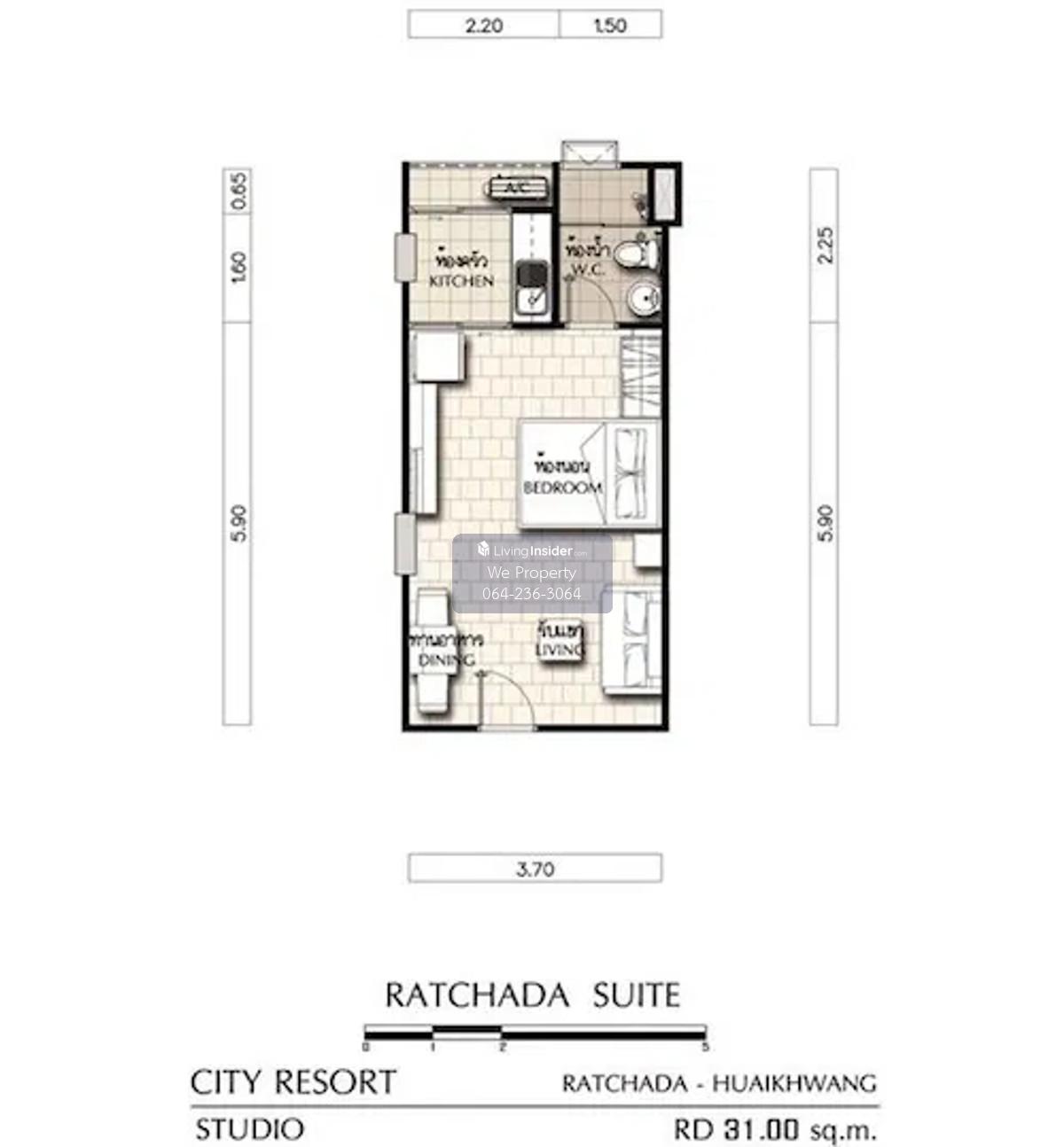 พื้นที่ใช้สอย 31.05 ตร.ม.