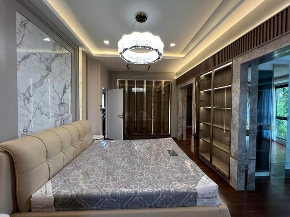 ให้เช่าบ้านเดี่ยว ตกแต่งหรู พร้อมเฟอร์ บางกอก บูเลอวาร์ด รามอินทรา-เสรีไทย 2 250,000 บาทต่อเดือน รายละเอียดบ้าน: ขนาดที่ดิน: 88 ตารางวา พื้นที่ใช้สอย: 390 ตารางเมตร ห้องนอน: 4+1 ห้องนอน ห้องน้ำ: 5 ห้อ