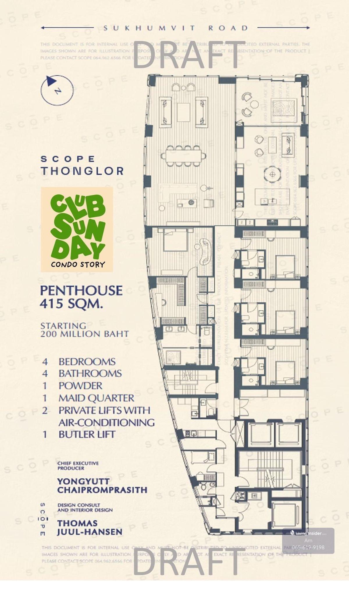 Scope Thonglor: Total 18 Penthouse units Total 32Fl 1 unit per floor 416.71sqm. (Just living room is 110 sqm) 4bed 5 bath + maid Sell: start 175,500,000 bht. Fully Furnished by Thomas Juan Hansen - Ri