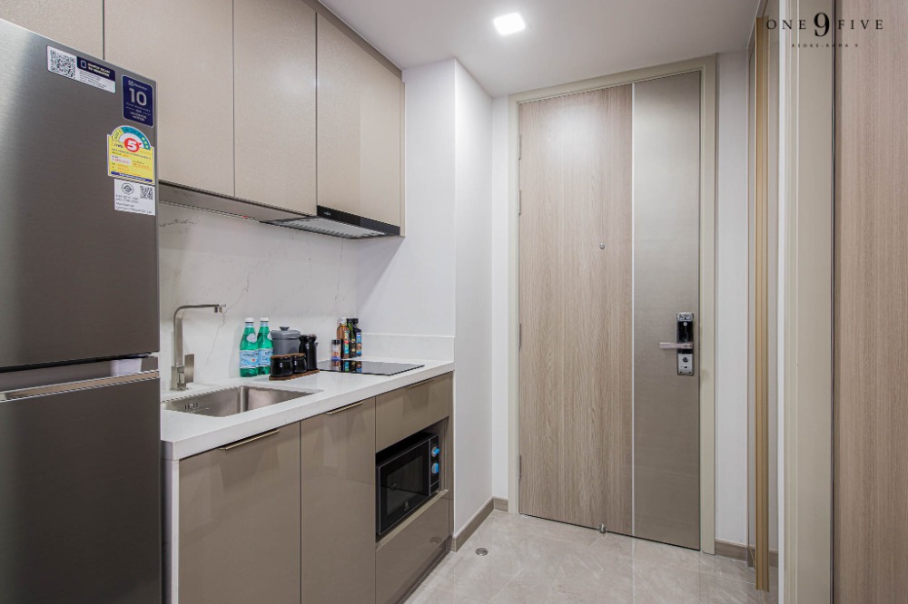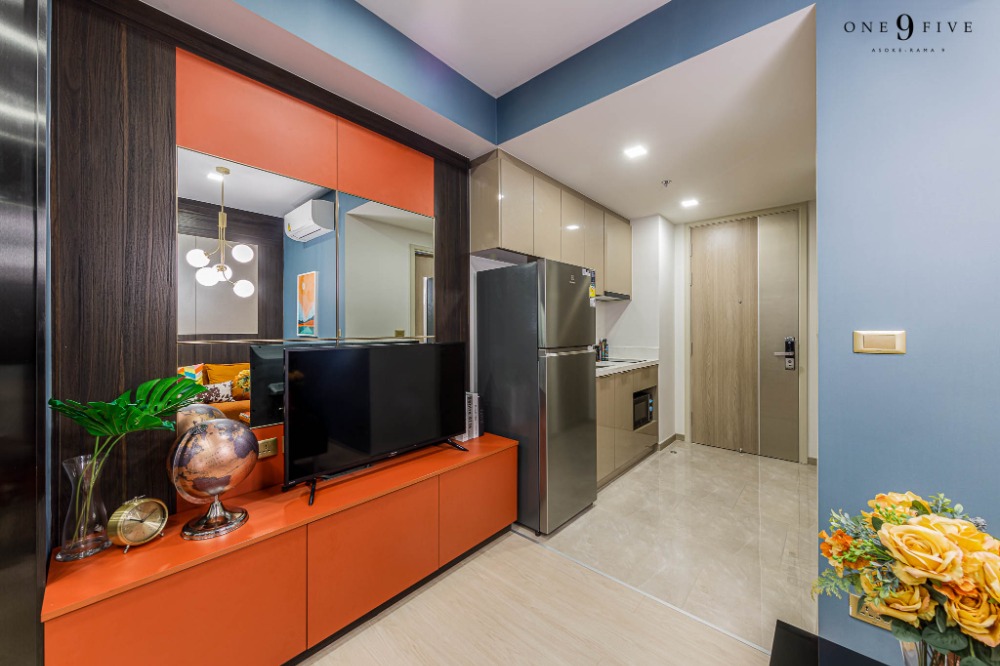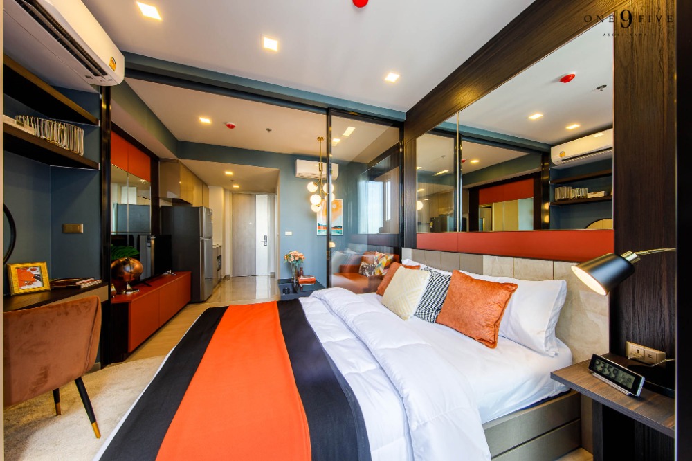 วันไนน์ไฟว์ อโศก-พระราม9 คอนโดมิเนียมหรูพร้อมอยู่ 61 ชั้น ที่สูงที่สุดใจกลาง New CBD รายล้อมไปด้วยสิ่งอำนวยความสะดวกมากมาย จัดเต็มพื้นที่ส่วนกลางขนาดใหญ่กว่า 8.6 ไร่ ทำเลศักยภาพ เดินทางสะดวก คุ้มค่ากับการลงทุน 📍ข้อมูลห้อง: B4408 รูปแบบ : studio ขนาด : 25.84 ตร.ม. อาคาร : B ชั้น : 44 ทิศ : ตะวันตก 🎉 พร้อมรับโปรโมชั่นส่วนลดเพิ่มเติม และข้อเสนอที่ดีที่สุด🎉 📍พื้นที่ส่วนกลาง (ค่าส่วนกลาง 50 บาท/ ตร.ม.) - สระว่ายน้ำกลางแจ้ง ยาว 100 เมตร - ฟิตเนส 2 ชั้น เครื่องออกกำลังกายจาก Techno Gym พื้นที่รวมกว่า 1,300 ตร.ม. - ห้องสมุด , ห้องดูหนัง , Kid’s Club (ขนาดใหญ่ 2 ชั้น) - ห้อง Golf Simulator, ห้อง Game / Social club, - ห้องสปา, ห้องซาวน่า, ห้องสตีม - Residential Lounge , Pool Lounge (ชั้น 8) , Sky lounge (ชั้น 61) - Meeting room (ชั้น 8), Sky meeting room (ชั้น 61) 📍สิ่งอํานวยความสะดวก ภายในโครงการ : - พื้นที่จอดรถ ประมาณ 50% - ร้านค้าภายในโครงการ (ร้านสะดวกซื้อ 7/11, ร้าน Flowever cafe & wine , ร้านนวด-สปา, ร้านทำเล็บ , คลินิคหมอฟัน, ร้านซักรีด เป็นต้น ) - EV Charger 9 สถานี - Self Service Car Wash - ระบบรักษาความปลอดภัย 24 ชม. 📍การเดินทาง : - 250 เมตร MRT สถานีพระราม 9 - 1 สถานี ถึง Airport rail link สถานีมักกะสัน เชื่อมสู่สนามบินสุวรรณภูมิ - 2 สถานี ถึง BTS สถานีอโศก - 1.3 กิโลเมตร ถึงจุดขึ้นทางด่วนพิเศษศรีรัช เชื่อมต่อเข้า-ออกนอกเมืองได้สะดวก 📍สถานที่ใกล้เคียง : - Central Rama9 - Fortune Tower - ตลาดจ๊อดแฟร์ - โรงพยาบาลพระราม 9, โรงพยาบาลปิยะเวท, โรงพยาบาลกรุงเทพ, โรงพยาบาลผิวหนังอโศก - International school : Shrewsbury, NIST, KIS , Regents - สำนักงานธนาคารอาคารสงเคราะห์, อสมท, ตลาดหลักทรัพย์, รฟม. 📞ติดต่อฝ่ายขาย : คลิกเพื่อดูเบอร์โทรติดต่อ , คลิกเพื่อดูเบอร์โทรติดต่อ นัดชมโครงการจริง ห้องจริงได้ทุกวัน เวลา 09.00-18.00 น. รายละเอียดโครงการเพิ่มเติม : www.one9five.com