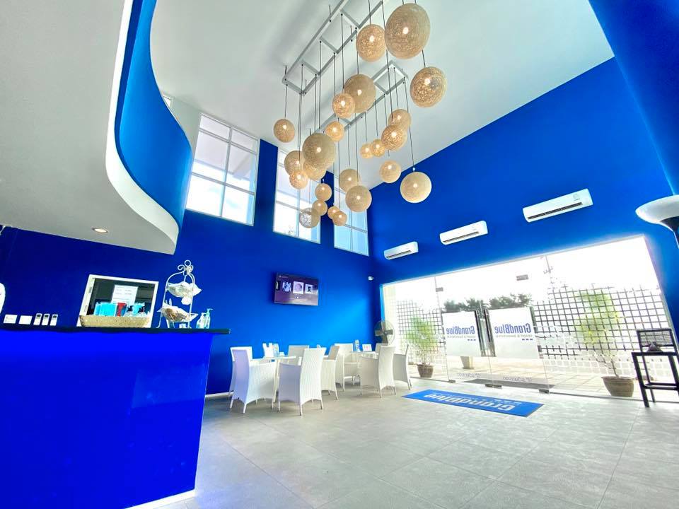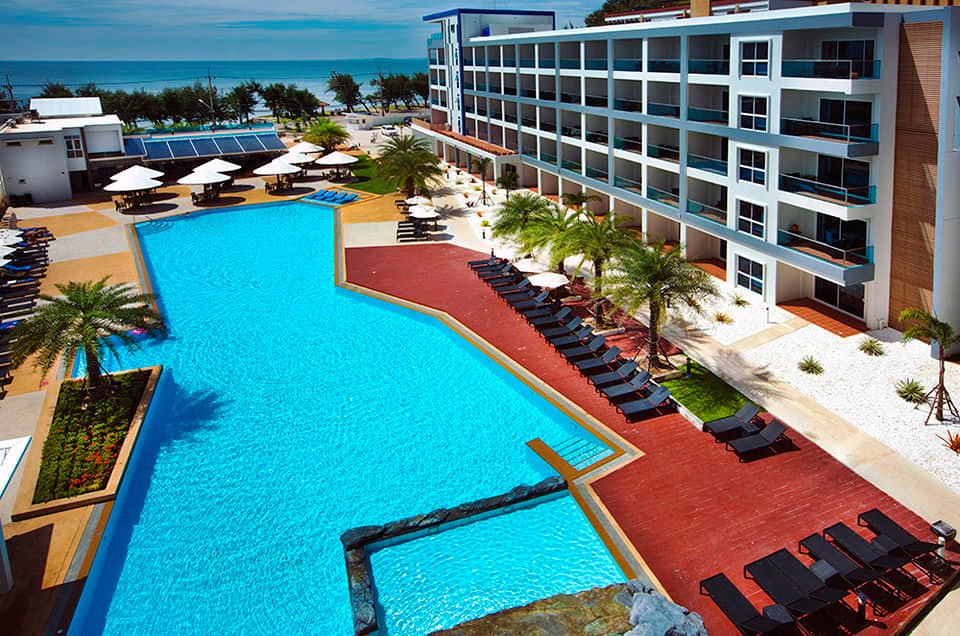 GrandBlue Resort & BeachClub - หาดแม่พิมพ์ ระยอง ประเทศไทย สถานที่พักผ่อนหย่อนใจ ผ่อนคลาย และรู้สึกดีกับชีวิต ไลฟ์สไตล์สุดเท่ พิเศษ และผ่อนคลายในบรรยากาศหรูหราด้วยธีมการออกแบบสไตล์เมดิเตอร์เรเนียนสมัยใหม่ บริเวณสระว่ายน้ำที่น่าประทับใจ บีชคลับ เลาจน์ และร้านอาหาร ตั้งอยู่บนทำเลริมชายหาดที่ยอดเยี่ยมใจกลางหาดแม่พิมพ์ยอดนิยม รีสอร์ทมีห้องนอน 2 ห้องแบบ Superior, De Luxe และ Family ที่สะดวกสบาย พร้อมระเบียงขนาดใหญ่ ทุกห้องหันหน้าไปทางบริเวณสระว่ายน้ำและท้องทะเลสีฟ้า คุณสมบัติพิเศษคือห้องที่มีประตูเชื่อมถึงกัน แกรนด์ บลู รีสอร์ท ....เกินความคาดหมาย • แกรนด์บลู รีสอร์ท แอนด์ บีชคลับ. อาคารหลัก จำนวนห้อง รวม 68 ห้อง • ห้อง De Luxe จำนวน 57 ยูนิต ครอบครัว 2 ห้องนอน จำนวน 10 ยูนิต เพนต์เฮาส์ 1 ยูนิต • ห้องดีลักซ์ 20 ห้องมีประตูเชื่อมถึงกัน • Mezetto Restaurant & Bar, 100+ ที่นั่ง • ลานเบียร์ควาย 40+ ที่นั่ง. • อาคารซักรีด ครบครัน
