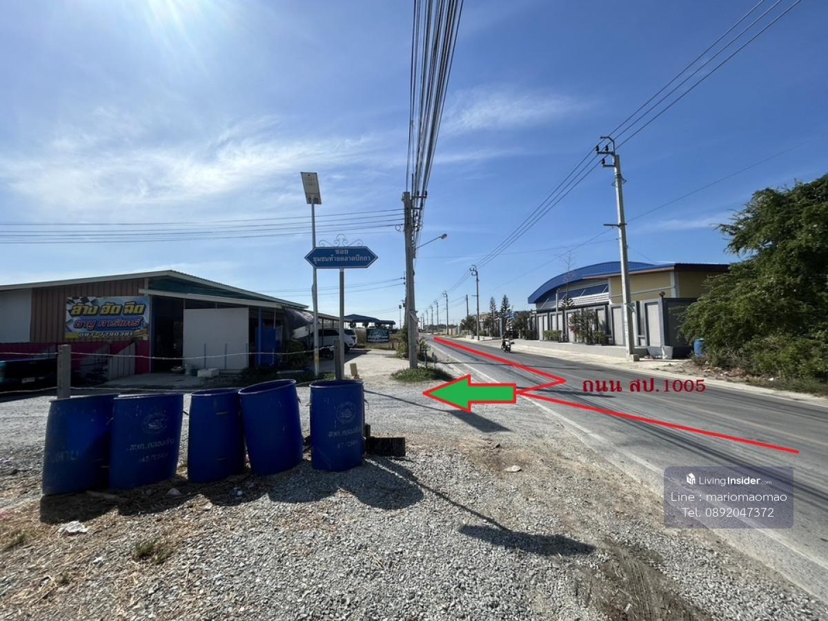 ✅รายละเอียดเพื่อประกอบการพิจารณา ต้องการขายที่ดินเปล่าถมแล้ว (เจ้าของขายเอง) จำนวน 1 แปลง (ติดถนนสาธารณะของท้องถิ่นกว้างประมาณ 5 เมตร) ขนาดพื้นที่ 100 ตารางวา ราคา 1,600,000 บาท (พร้อมค่าโอนกรรมสิทธิ์) (หน้าที่ดินกว้างติดถนนโดยประมาณ 13 เมตร ยาว 32 เมตร) พิกัด : https://maps.app.goo.gl/HPSoAWcJ51Cc9mnP7 --------------------------------------------------------------------------------------------------- ✅สาธารณูปโภค - มีระบบไฟฟ้าของการไฟฟ้าเข้าถึง รวมทั้งไฟส่องสว่างถนนระบบโซล่าเซลล์ของท้องถิ่น - ปีงบประมาณ 69 ท้องถิ่นแจ้งว่า จะมีการดำเนินการปรับพื้นถนนเป็นคอนกรีต พร้อมทั้งระบบท่อน้ำประปาขนานกับถนน ✅ประโยชน์การใช้สอย : เหมาะสำหรับปลูกบ้านเพื่ออยู่อาศัย (ครอบครัวขนาดเล็ก-ขนาดกลาง) ✅ทำเลที่ตั้งที่ดิน : ซอยชุมชนท้ายตลาดปีกา (เข้าซอยประมาณ 200 เมตร) ถนนทางหลวงชนบทสมุทรปราการ (หมายเลข สป 1005) ตำบลคลองด่าน อำเภอบางบ่อ จังหวัดสมุทรปราการ ----------------------------------------------------------------------------------------------------- ✅โดยสามารถเข้า-ออกได้ 2 ทาง คือ 1. ถนนสุขุมวิท ช่วงวัดแจ่มราษฎร์ ศรัทธาธรรม (สีล้ง) ฝั่งขาออกไปฉะเชิงเทรา-ชลบุรี (ระยะทางห่างจากถนนสุขุมวิท ประมาณ 5 กิโลเมตร) 2. ถนนบางนาตราด กม.32 ฝั่งขาเข้ากรุงเทพฯ (ระยะทางห่างจากถนนบางนาตราด ประมาณ 6 กิโลเมตร) ------------------------------------------------------------------------------------------------------- ✅จุดเด่น 1. เป็นพื้นที่รอยต่อระหว่างจังหวัดสมุทรปราการกับจังหวัดฉะเชิงเทรา โดยถนนทางหลวงชนบทสมุทรปราการ (หมายเลข 1005) เป็นเส้นทางลัดระหว่างถนนสุขุมวิทกับถนนบางนาตราด กม.32 2. ทำเลสวย ใกล้วัดปานประสิทธาราม (หลวงพ่อปาน) และตลาดน้ำปีกกา (ประมาณ 300 เมตร) 3. ใกล้วัดหงส์ทอง จังหวัดฉะเชิงเทรา ประมาณ 9 กิโลเมตร 4. พื้นที่ชานเมืองเหมาะแก่การปลูกบ้านเพื่ออยู่อาศัย ----------------------------------------------------------------------------------------------------------- ✅สอบถามรายละเอียด✅ 1. เบอร์โทร : คลิกเพื่อดูเบอร์โทรติดต่อ (คุณเหมา) 2. ID Line : mariomaomao 3. หรือ Inbox facebook : Narong Aiemsaard ✅รายละเอียดตามภาพถ่าย✅