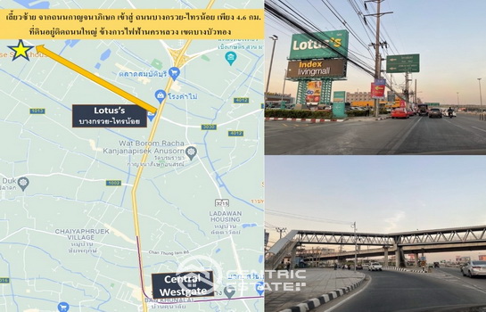 รหัสทรัพย์ : CE67-1028 ขายที่ดิน ถมแล้ว 11 ไร่ 65 ตารางวา ทำเลดี ติดถนนบางกรวย-ไทรน้อย ข้างการไฟฟ้านครหลวง เขตบางบัวทอง ถนนบางกรวย-ไทรน้อย ตำบลบางบัวทอง อำเภอบางบัวทอง จังหวัดนนทบุรี หันหน้าทางทิศตะวันออกเฉียงเหนือ รายละเอียด - ขนาดพื้นที่ดิน 11 ไร่ 65 ตารางวา (ที่ดิน 2 แปลงติดกัน 7 ไร่ 3 งาน 20 ตารางวา และ 3 ไร่ 1 งาน 45 ตารางวา) - ที่ดินถมเรียบร้อยแล้ว ติดถนนบางกรวย-ไทรน้อย ด้านข้างติดกับการไฟฟ้านครหลวง เขตบางบัวทอง - พื้นที่หน้ากว้าง 32.6 ม. ลึก 291.3 ม. - เหมาะสำหรับทำโครงการบ้านจัดสรร/โรงงาน/คลังสินค้า/ลงทุนเก็งกำไร - สามารถเดินทางเชื่อมต่อไปยังถนนกาญจนาภิเษก ถนนชัยพฤกษ์ และถนนราชพฤกษ์ได้สะดวก - ใกล้กับรถไฟฟ้าสายสีม่วง สถานีคลองบางไผ่ สถานที่ใกล้เคียง - การไฟฟ้านครหลวง เขตบางบัวทอง - วีฟู้ดมาร์เก็ต บางบัวทอง - แม็คโคร สาขาบางบัวทอง - โลตัส บางกรวย-ไทรน้อย - ไทวัสดุ บางบัวทอง - เซ็นทรัล เวสต์เกต - โรงเรียนสารสาสน์วิเทศไทรน้อยพิทยาคาร - โรงพยาบาล กรุงไทย เวสเทิร์น - โรงพยาบาล เกษมราษฎร์ รัตนาธิเบศร์ - รถไฟฟ้า MRT สถานีคลองบางไผ่ ** ราคาขาย 156,275,000 บาท *** ดูข้อมูลเพิ่มเติมที่นี่ >> https://www.centricestate.com/CE67-1028.html สนใจติดต่อ : K. เจมส์ โทร : คลิกเพื่อดูเบอร์โทรติดต่อ Line ID : @centricestate e-mail : คลิกเพื่อดูอีเมล Page : https://www.thaihometown.com/agency/CentricEstate Facebook : https://www.facebook.com/CentricEstate รับฝาก ขาย-ซื้อ-เช่า อสังหาริมทรัพย์ทุกประเภท ฟรีค่าการตลาด