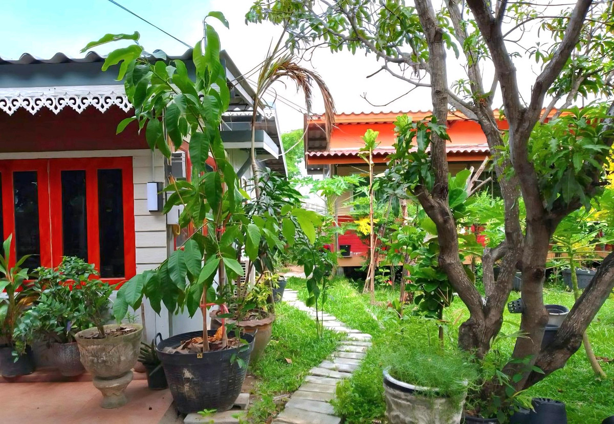 บ้านชั้นเดียว ให้เช่าบรรยากาศในสวน บางปลารีสอร์ท -มีบ่อปลา -วิวสวนธรรมชาติ__สดชื่น -free wifi ที่อยู่บ้านเลขที่ 196 หมู่ที่ 6 ตำบลบางปลาอำเภอ บางเลน จังหวัดนครปฐม 73130 เนื้อที่ดิน 35ตารางวา 2ห้องนอน
