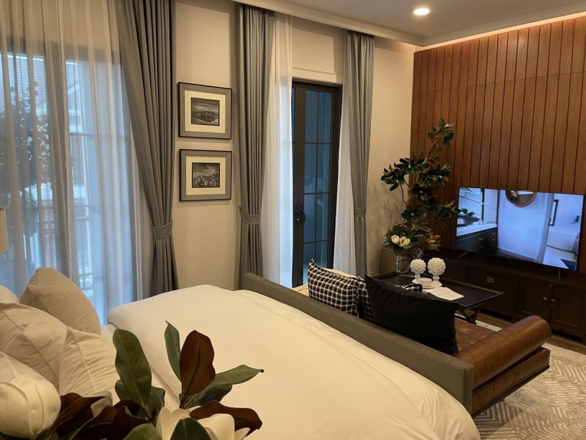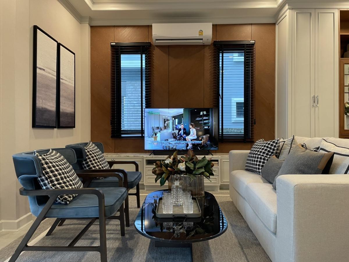 โครงการ มิลตัน เรสซิเดนซ์ รามอินทรา 119 MILTON RESIDENCE RAMINTRA โครงการหรู คุณภาพชีวิตที่ดี เหมาะกับการอยู่อาศัยได้แบบสบายจริง ๆ นำเสนอบ้านสไตล์ อเมริกัน ลักชัวรี่ คอมฟอร์ท (American Luxury Comfort) คฤหาสน์หรู ใช้วัสดุเกรดพรีเมี่ยม งดงามทั้งภายนอกและภายใน เหลือเพียง 4 หลัง ราคาเริ่มต้น 24 ล้านบาท แบบบ้านเนลลิงตัน (Nellington) พื้นที่ใช้สอย 477 ตร.ม. บนที่ดินเริ่มต้น 108 ตร.ว. 4 ห้องนอน 6 ห้องน้ำ มีห้องแม่บ้าน และ จอดรถได้ 4 คัน พื้นที่ในบ้านโปร่ง โล่ง อยู่สบาย พื้นที่ส่วนกลางออกแบบมาให้สามารถรับแขกและจัดเลี้ยงได้ มีฟิตเนส และ สระว่ายน้ำขนาดครึ่งสนามโอลิมปิค สภาพแวดล้อมภายในโครงการมีความร่มรื่น สงบ และปลอดภัยมาก ๆ มีพื้นที่สีเขียว มีสนามหญ้าขนาดใหญ่ ทางเข้าโครงการมี รปภ. และ ต้องผ่านประตูทางเข้า 2 ชั้น ตอนนี้มีโปรโมชั่น แถมฟรี แอร์ 7 ตัว + ค่าโอน