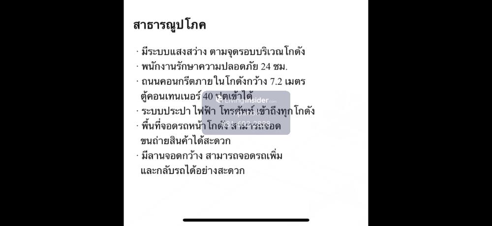 ประกาศให้เช่าโกดังสินค้า รายปี ขนาดพื้นที่ 100-1,250 ตร.ม.** บ้านบึง-ชลบุรี **รายละเอียดทรัพย์:** - โกดังสินค้าให้เช่าพร้อมใช้งาน ขนาดพื้นที่ตั้งแต่ 100 - 1,250 ตารางเมตร - มีให้เลือก 3 โซน A-B-C ตามความต้องการใช้งาน **จุดเด่น:** - โกดังสภาพพร้อมใช้งาน และมีระบบรักษาความปลอดภัยที่ดี - เหมาะสำหรับเก็บสินค้า หรือใช้เป็นพื้นที่ผลิต - การเดินทางสะดวก เข้า-ออกได้หลายเส้นทาง รองรับการขนส่งสินค้าได้สะดวก **สาธารณูปโภค - ระบบไฟฟ้า ระบบ 1 เฟส จ่ายตามบิลของการไฟฟ้า ระบบ 3 เฟส มีหม้อแปลง บวก 4000-6000 บาท จากบิลการไฟฟ้า -น้ำประปา 50บาท/หน่วย - ระบบรักษาความปลอดภัย 5 ฿/ตรม/เดือน สิ่งอำนวยความสะดวก : -มีระบบแสงสว่าง ตามจุดรอบบริเวณโกดัง -พนักงานรักษาความปลอดภัย 24 ชม. -ถนนคอนกรีตภายในโกดังกว้าง 7.2 เมตร -ตู้คอนเทนเนอร์ 40 ฟุตเข้าได้ -ระบบประปา ไฟฟ้า โทรศัพท์ เข้าถึงทุกโกดัง -พื้นที่จอดรถหน้าโกดัง สามารถจอดขนถ่ายสินค้าได้สะดวก -มีลานจอดกว้าง สามารถจอดรถเพิ่ม และกลับรถได้อย่างสะดวก การคมนาคม : -เดินทางสะดวก เข้าออกได้หลายทางทั้งทางหลัก และทางรอง สู่ถนนใหญ่ เช่น ถนนมอเตอร์เวย์ ถนนบายพาส ใกล้ท่าเรือแหลมฉบัง และนิคมฯ เพียง 20 นาที ถึงนิคมอมตะซิตี้,นิคมปิ่นทอง เพียง 30 นาที ถึงนิคมฯบ่อวิน, ท่าเรือแหลมฉบัง เพียง 45 นาที ถึงสนามบินสุวรรณภูมิ **ราคาและเงื่อนไขการเช่า:** - สัญญาเช่ารายปี - ราคาค่าเช่าขึ้นอยู่กับขนาดพื้นที่ที่เลือก Please contact (สนใจ ติดต่อได้) นก : คลิกเพื่อดูเบอร์โทรติดต่อ Line : https://line.me/ti/p/VtQI6ZqwAr MAIL. : คลิกเพื่อดูอีเมล https://www.facebook.com/profile.php?id= คลิกเพื่อดูเบอร์โทรติดต่อ... รับฝาก ขาย ขายฝาก รับซื้อ เช่า อสังหาฯ ทุกชนิด #ให้เช่าโกดังชลบุรี #เช่าโกดังสินค้า #ให้เช่าคลังสินค้า #ให้เช่าโกดังสินค้าบ้านบึง #เช่าโกดังบ้านบึง