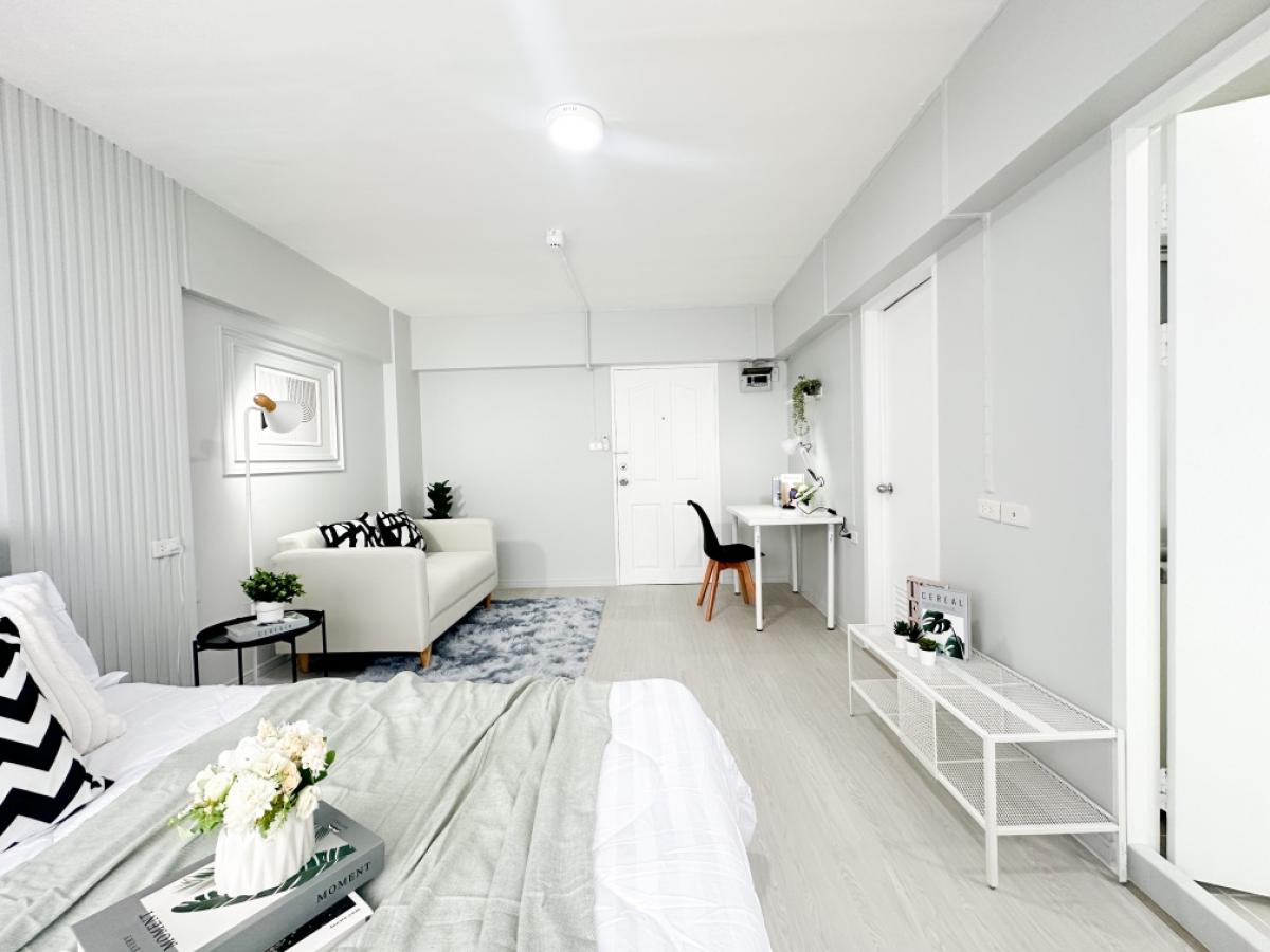 ห้องตกแต่งใหม่ พร้อมอยู่ ตึก F1 ติดถนน ใกล้ห้างเดอะมอลล์ บางกะปิ เดินทางสะดวกสบาย ขนาด 26.16 ตรม. ชั้น 5 1 ห้องนอน 1 ห้องน้ำ ห้องครัวกั้นเป็นสัดส่วน แอร์ใหม่ 1 ตัว เครื่องทำน้ำอุ่น เฟอร์นิเจอร์ครบ พร้
