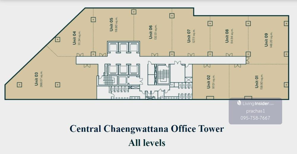 อาคารสำนักงานเซ็นทรัลพลาซา แจ้งวัฒนะ Central Plaza Chaengwattana Office Tower สำนักงานออฟฟิศให้เช่าย่านแจ้งวัฒนะ ปากเกร็ด นนทบุรี ใกล้สถานีรถไฟฟ้า MRT แจ้งวัฒนะ-ปากเกร็ด 28 ค่าเช่าเริ่ม 600 บาท*/ตารางเมตร/เดือน ระยะเวลาเช่า 3 ปี ชั้น 18 เนื้อที่ 97 ตารางเมตร ค่าเข่า 58,200 บาท/เดือน ระยะเวลาเช่า 3 ปี เซ็นทรัลพลาซา แจ้งวัฒนะ Central Plaza Chaengwattana ตั้งอยู่ติดถนนแจ้งวัฒนะระหว่างซอยแจ้งวัฒนะ-ปากเกร็ด 26 และ 28 เป็นจุดเชื่อมต่อระหว่าง กรุงเทพ-ปริมณฑล-นนทบุรี-ปทุมธานี มีร้านค้า ร้านอาหาร อำนวยความสะดวกมากมาย มีพื้นที่ดินรวมประมาณ 24 ไร่ อาคารสำนักงานสูง 15 ชั้น ตั้งแต่ชั้น 8-23 ส่วนโถงอาคารสำนักงาน อยู่ที่ชั้น G ขนาดพื้นที่ให้เช่าตั้งแต่ 90 ตร.ม ขึ้นไป รวมพื้นที่ให้เช่าทั้งหมดประมาณ 20,000 ตร.ม. อาคารสำนักงานเซ็นทรัลพลาซา แจ้งวัฒนะ เหมาะสำหรับเช่าทำสำนักงาน สถาบันการศึกษา คลินิก เวลเนส เป็นต้น พื้นที่สำนักงานว่างให้เช่า - ขนาดตั้งแต่ 97.01 - 1,078.63 ตารางเมตร - ราคาค่าเช่าสำนักงาน 600 - 650 บาท/ตารางเมตร/เดือน เงื่อนไขการเช่า - สัญญาเช่า 3 ปี - เงินประกันการเช่าพื้นที่สำนักงาน 3 เดือน - ค่าเช่าล่วงหน้า 1 เดือน ค่าที่จอดรถ - ที่จอดรถฟรี 1 คัน / พื้นที่ 100 ตร.ม. - ที่จอดรถเพิ่มเติม 1,500 บาท/คัน/เดือน - ที่จอดรถมอเตอร์ไซค์ 450 บาท/คัน/เดือน สถานที่ใกล้เคียง เซ็นทรัล แจ้งวัฒนะ, ศูนย์ราชการเฉลิมพระเกียรติ, โรงพยาบาลเวิลด์เมดิคอล, สถาบันการจัดการปัญญาภิวัฒน์ ,มหาวิทยาลัยสุโขทัยธรรมาธิราช, ศูนย์แสดงสินค้าและการประชุมอิมแพ็คเมืองทองธานี, ท่าอากาศยานดอนเมือง https://maps.app.goo.gl/H86WJmok8VaDeY6N7 *เงื่อนไขเป็นไปตามที่บริษัทฯกำหนด ติดต่อสอบถาม Tel. คลิกเพื่อดูเบอร์โทรติดต่อ