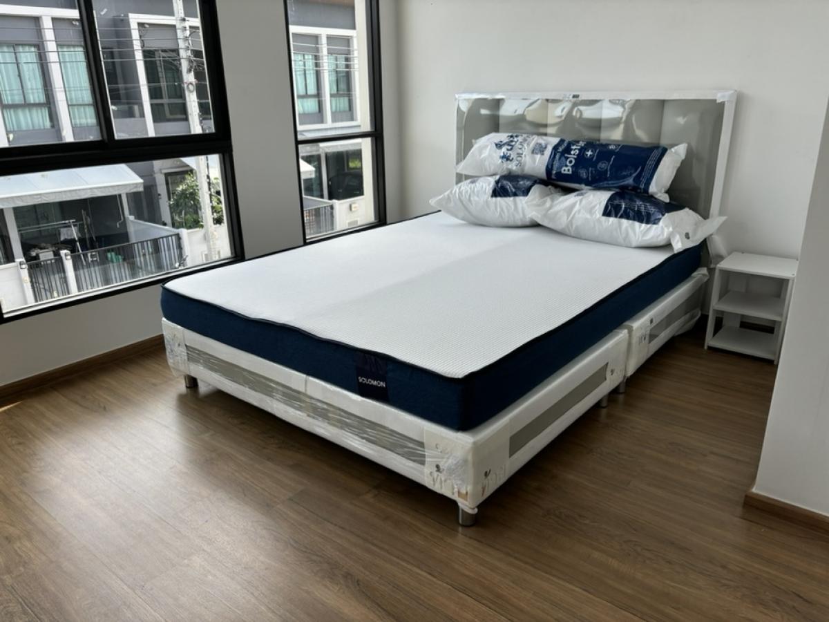 เฟอร์ใหม่ทั้งหลัง ปล่อยเช่าครั้งแรก มีแอร์แล้ว 3 ตัว, ตู้เย็น 1 ตัว ห้องรับแขกมีโซฟา 1 ตัว ในครัวมีเครื่องดูดควัน ห้องน้ำชั้น2ติดตัังเครื่องทำน้ำอุ่นแล้ว จอดรถในบ้าน 1 คัน หน้าบ้านอีก 1 คัน ส่วนกลางครบครัน