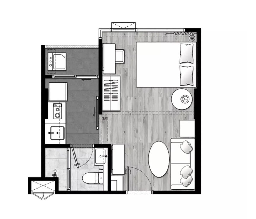 ให้เช่า คอนโด ยู เกษตร-นวมินทร์ ตึก A ชั้น 4 แบบสตูดิโอ ขนาด 26.5 ตรม. แต่งครบ พร้อมอยู่ ระเบียงทิศตะวันออกเฉียงเหนือ