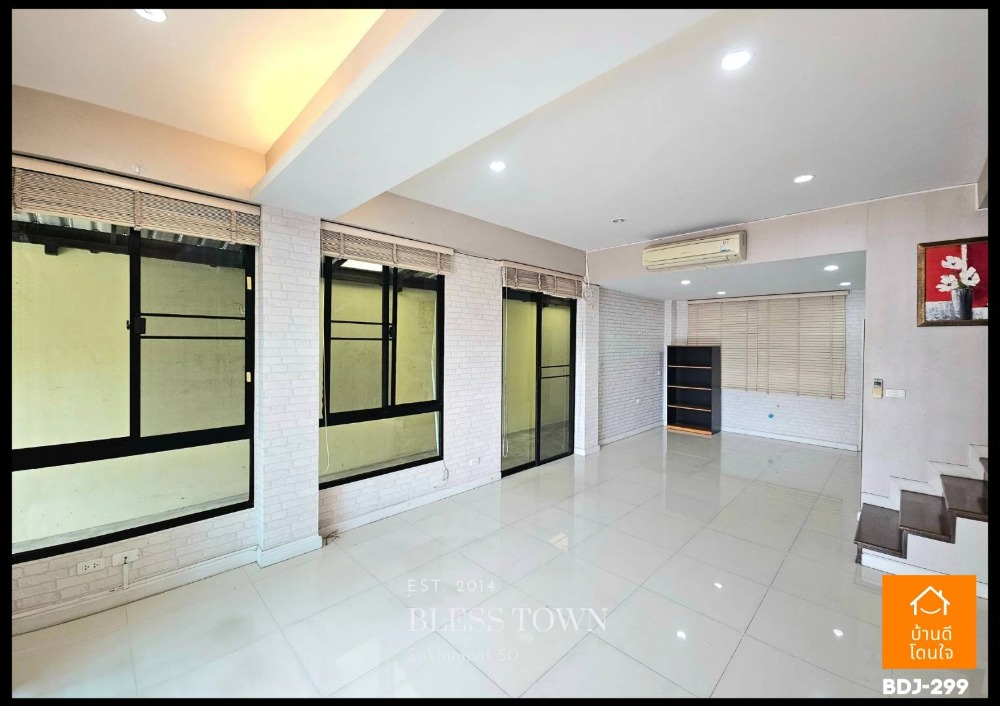 ทาวน์โฮม Bless Town สุขุมวิท 50 (28.9ตร.ว.) 3นอน 4น้ำ หลังมุม ใกล้ BTS อ่อนนุช ขายพร้อมผู้เช่า เหมาะสำหรับนักลงทุน ที่ต้องการเก็บผลตอบแทนยาวๆ เพราะทำเลดีมาก ต่อไปยิ่งหาได้ยาก +++ราคาพิเศษ 13.39 ล้าน +++ (จาก 17.9 ล้าน) รายละเอียด : - Location ซ. สุขุมวิท 50 แขวงพระโขนง เขตคลองเตย กรุงเทพมหานคร 10260 - พิกัด https://maps.app.goo.gl/uUXH1V3uRJMcbvqq8 - ทาวน์โฮม 3.5 ชั้น หน้ากว้าง 5 เมตร เหมาะสำหรับบ้านหรือทำ Home Office หลังมุม - ขนาดพื้นที่ 28.9 ตร.ว. พื้นที่ใช้สอย 240 ตร.ม. - จำนวน 3 ห้องนอน 4 ห้องน้ำ - ชั้น 1 ต่อเติมครัวและหลังคาด้านข้าง - ชั้น 2 เป็น Double Space สูง 6 เมตร - ชั้น 3 ห้องนอน Master พร้อมระเบียงกว้าง - หน้าบ้านทิศใต้ - จำนวนที่จอดรถ 2-4 คัน - สามารถทำเป้น Home Office ได้ - ขายพร้อมผู้เช่า สัญญา 2 ปี ( ถึงตุลาคม 2569) ค่าเช่า 54,000 บาท/เดือน จุดเด่น - เพียง 900ม. ถึงรถไฟฟ้า BTS อ่อนนุช - ใกล้ทางด่วน รามอินทรา-อาจณรงค์, บางนา-ดินแดง สิ่งอำนวยความสะดวก - สวนสาธารณะ, รปภ. 24 ชม., CCTV การเดินทาง - ใกล้โชคชัย 4 ซอยภาวนา ซอยเสือใหญ่ รัชดา 36 - มีทางลัดทะลุออกไปได้หลายเส้นทาง รัชดาภิเษก ซอยเสือใหญ่ พหลโยธิน เกษตรนวมินทร์ - รถไฟฟ้าสายสีเหลือง สถานี โชคชัย 4 สถานที่ใกล้เคียง - 7/11 : ใต้อาคาร The Link - ศูนย์การค้าสุขุมวิท 50 - Lotus อ่อนนุช - BigC อ่อนนุช - Gateway เอกมัย - Major Cineplex เอกมัย - รพ.กล้วยน้ำไท - รพ.สุขุมวิท - รพ.ท่าเรือ - รพ.วิภาราม - ม.กรุงเทพ - รร.นานาชาติเอกมัย ############################### รหัสทรัพย์ (Code): BDJ-299 สนใจติดต่อ / Contact ทาง LineID : @baandeedonjai หรือคลิกที่นี่: https://lin.ee/qj6jzs0 (ก้อย) โทร : คลิกเพื่อดูเบอร์โทรติดต่อ (กล้า) โทร : คลิกเพื่อดูเบอร์โทรติดต่อ บริการฝาก ขาย/เช่า อสังหาริมทรัพย์ทุกชนิด โดยทีมงานมืออาชีพ วิเคราะห์ราคาเพื่อให้เกิดการขาย การตลาดเข้มข้น ตรงกลุ่มเป้าหมาย ** ฟรีทุกค่าใช้จ่ายในการทำตลาด ** Website: https://www.baandeedonjai.com/ Facebook Page : Baandeedonjai #บ้านดีโดนใจ #บริการด้วยใจคืองานของเรา #รับฝากขายบ้านที่ดินคอนโดกรุงเทพ #บ้านมือสอง #บ้านมือสองราคาถูก #บ้านเดี่ยว #บ้านมือสองสวย #ขายบ้าน #ฝากขายบ้าน #บ้านราคาถูก #ทาวน์เฮ้าส์ #ทาวน์โฮม #โฮมออฟฟิศ #HomeOffice #Blesstown #สุขุมวิท50 #อ่อนนุช #รามอินทราอาจณรงค์ #พระโขนง #คลองเตย #ซอยเหลือสุข #Sukhumvit50 #เดอะลิงค์ #อุดมสุข #พระโขนง #บางจาก #ปุณณวิถึ