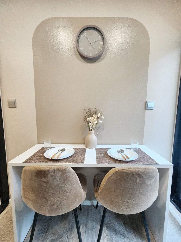 Kave Town Colony ตึก A ชั้น 2 วิวใน/วิวสระ *ห้อง rare item* **ค่าเช่า** สัญญา 1 ปี 14,000 บาท/เดือน ห้องใหม่แต่งสวย พร้อมเข้าอยู่ทันที - ห้อง 1-bed exclusive 26 ตร.ม. - กั้นห้องครัวแยกเป็นสัดส่วน *ห้อง rare item* ของโครงการ - ระเบียงห้องหันหน้าทิศใต้ ลมดีไม่ร้อน หัวนอนทิศตะวันออก - วิวสระสวยทั้งกลางวันกลางคืน - อยู่ตึก A หน้าสุด ทำเลติด ม.กรุงเทพ ไปเรียนสะดวก โครงการมีรถ shuttle bus รับ-ส่ง - เครื่องใช้ไฟฟ้าครบ set - เครื่องทำน้ำอุ่น Stiebel Eltron - เครื่องซักผ้า - ตู้เย็น 2 ประตู - Smart TV 40 นิ้ว - ไมโครเวฟ - แอร์ 2 ตัว - เฟอร์นิเจอร์ครบ set - โซฟา - ตู้บิวท์อิน - เตียง 5 ฟุตพร้อมฟูกและชุดเครื่องนอน - โต๊ะทำงาน -โต๊ะทานอาหาร - ระบบเสียงบลูทูธ - digital door lock - ม่าน blackout ทั้งห้องนอนและห้องครัว ห้องนอนมีผ้าม่านโปร่ง สนใจติดต่อ K. แหวน คลิกเพื่อดูเบอร์โทรติดต่อ Inbox: m.me/whanw Line : https://line.me/ti/p/rHnG49eVEx