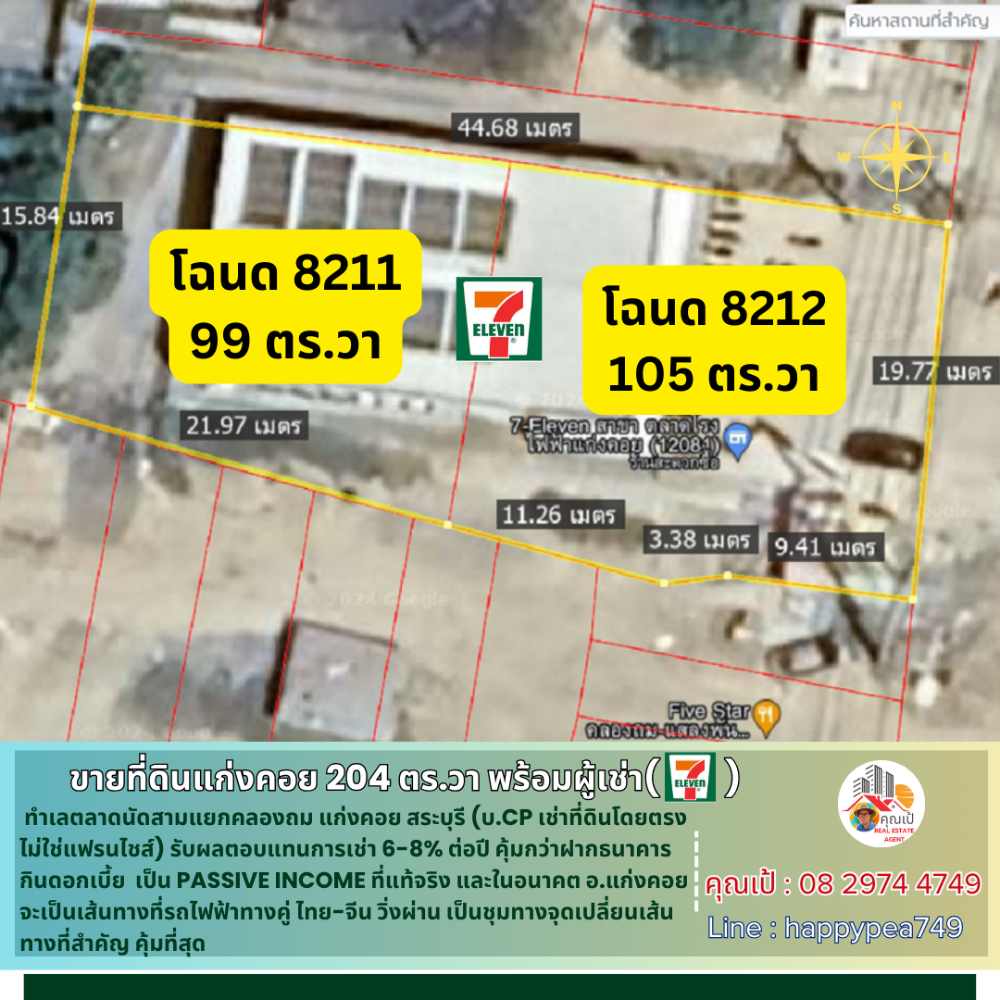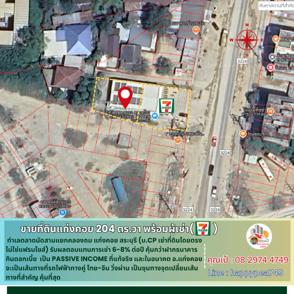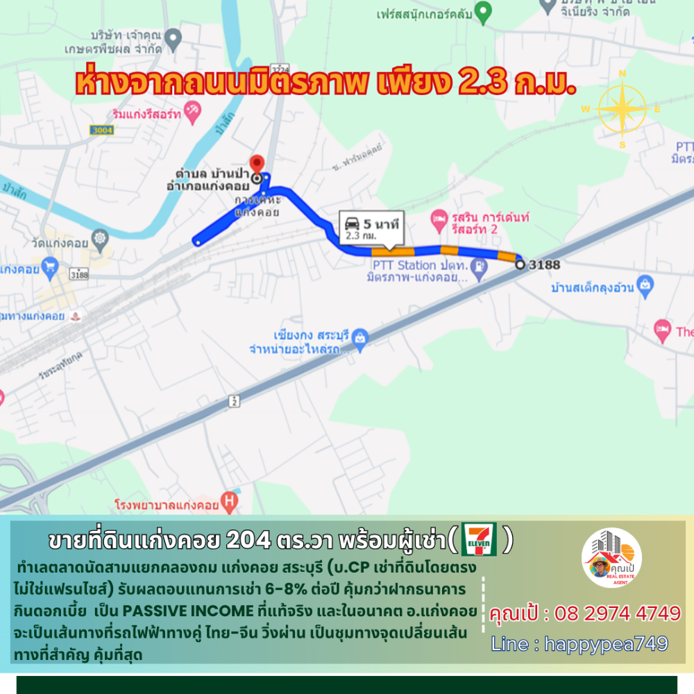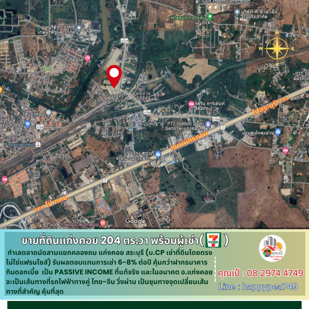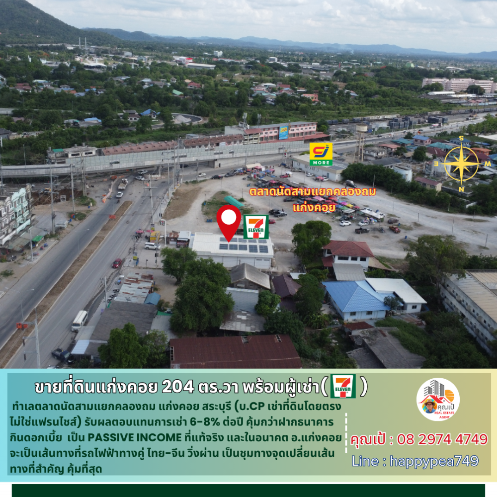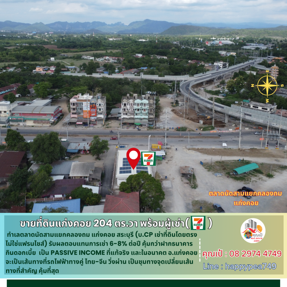 [ขายแล้ว] 💰ซื้อปุ๊บ ได้ค่าเช่าปั๊บ ขายที่ดินแก่งคอย 204 ตร.วา พร้อมผู้เช่า CP ร้าน 7-11 ทำเลตลาดนัด สัญญาเช่าระยะยาว เป็น Passive Income ผลตอบแทนการเช่า 6-8%ต่อปี