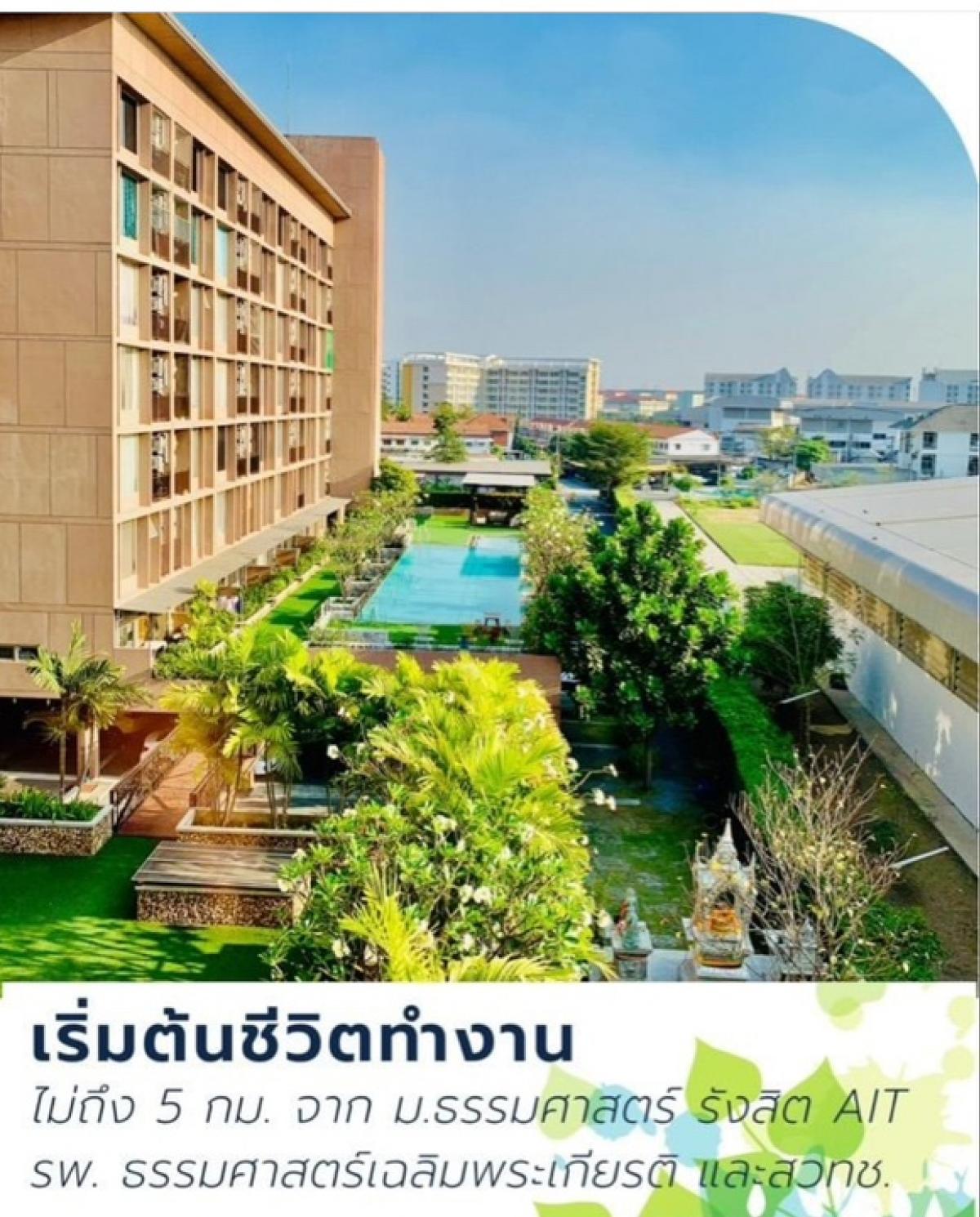พื้นที่ห้องขนาดใหญ่ 35.8 ตรม. ห้องมุม ชั้น 5 วิวสระว่ายน้ำ ราคาเช่า เดือนละ 9,000 บาท *(ราคาเช่า รวมส่วนกลางและที่จอดรถแล้วนะคะ) พิเศษ !! สัญญา 3 ปีขึ้นไป เหลือ เดือนละ 8,500 บาท ** สนใจ ติดต่อ :: คุณยุ้ย ** โทร. / Line ID :: คลิกเพื่อดูเบอร์โทรติดต่อ เฟอร์นิเจอร์ครบ พร้อมอยู่ สิทธิ์ที่จอดรถ 1 คัน ฟรี [มีสติ๊กเกอร์+การ์ดติดหน้ารถ] ห้องนอน * เตียงขนาด 6 ฟุต พร้อมที่นอน และชุดเครื่องนอน * โต๊ะ เก้าอี้ทำงาน+ ชุดโคมไฟ * แอร์คอนดิชัน 1 ตัว ห้องนั่งเล่น * โซฟา 2 ที่นั่ง+หมอนอิง * พรมผืนใหญ่ * ชั้นวาง TV ขนาดใหญ่มีลิ้นชักเก็บของ * ชุดไฟ loft * แอร์คอนดิชัน 1 ตัว * ทีวี ขนาด 32 นิ้ว ห้องครัว * โต๊ะทานข้าว พับเก็บได้ + เก้าอี้ 2 ตัว+ ชุดโคมไฟ loft * เคาร์เตอร์+ อ่างล้างจาน * ชั้นแขวนคว่ำจานสแตนเลส * ตู้แขวน ขนาดใหญ่ 2 ตู้เก็บของได้เยอะ * ตกแต่งวอลเปเปอร์+กระเบื้องโมเสก * ตู้เย็นขนาด 7.8 คิว 2 ประตู * ไมโครเวฟ ห้องอาบน้ำ * ตู้กระจกอาบน้ำ * เครื่องทำน้ำอุ่น * ชั้นแขวนเสื้อ IKIA * ตู้เสื้อผ้าขนาดใหญ่ * ชั้นวางของ ห้องน้ำ * สุขภัณฑ์ * อ่างล้างมือ อื่นๆ * ราวตากผ้าด้านนอกระเบียง * หิ้งพระ [ถ้าต้องการจะติดให้] โครงการฟ้าโดม คอนโดมิเนียม ทำเลติด มธ รังสิต * คอนโดเป็นส่วนตัว ยูนิตไม่เยอะ อาคาร A เจ้าของปล่อยเอง * ระบบ Access Control ด้วย Key Card เข้า-ออกอาคาร + ลิฟต์ล็อคชั้น * กล้องวงจรปิด CCTV 24 ชั่วโมง * เจ้าหน้าที่รักษาความปลอดภัย 24 ชั่วโมง สิ่งอำนวยความสะดวกครบครัน * สระว่ายน้ำ 25 เมตร มีอ่างจากุซซี่ * ฟิตเนส, เก้าอี้นวดไฟฟ้า * ห้องบริการเครื่องซักผ้าหยอดเหรียญ * ตู้กดน้ำ หมดห่วงเรื่องของกินละทางการเดินทาง * หน้าลิฟต์มีตู้กดอาหารและน้ำดื่ม * ปากซอยมี 7-11 ถึง 2 สาขา * หน้าโครงการมีร้านอาหาร + Cafe * ที่จอดรถในร่ม เข้าออกด้วยระบบ Easy Pass * หากไม่ใช่รถ มีมอเตอร์ไซด์รับจ้างผ่านเข้า-ออก ตลอดเวลา * มีรถกอล์ฟบริการส่งบริวเวณคอนโด-หน้าปากซอย ฟรี เหมาะสำหรับนักศึกษาและวัยทำงานที่มองหาที่พักที่ได้มาตราฐาน ปลอดภัย และ สะดวกสบาย สามารถอยู่เป็นครอบครัวได้สบายๆ ** สนใจ ติดต่อ :: คุณยุ้ย ** โทร. / Line ID :: คลิกเพื่อดูเบอร์โทรติดต่อ
