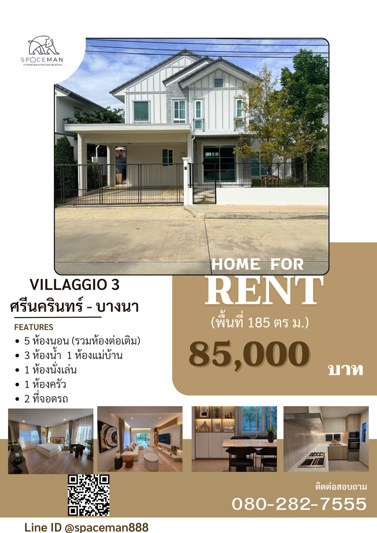 ✅ ราคาเช่า 85,000 บาท / เดือน 📣🌈🏡 เช่าบ้าน Villaggio 3 ศรีนครินทร์ - บางนา ตกแต่งสวย ใกล้Mega บางนา 👉 พื้นที่ใช้สอย 185 ตรม. 👉 5 ห้องนอน 🛁 3 ห้องน้ำ 👉 1 ห้องนั่งเล่น 1 ห้องครัว 🚙 2 ที่จอดรถ 1 ห้องแม่บ้าน ⭐️ ระยะสัญญา 1 ปี ดูแลตลอดอายุสัญญาเช่าค่ะ ⭐️ แรกเข้าชำระ ล่วงหน้า 1 เดือน + ประกัน 2 เดือน 😊 ยินดีรับ co-agent ♥️ สนใจติดต่อ คุณมีน (Agent) ☎️ Tel. คลิกเพื่อดูเบอร์โทรติดต่อ Line Official : @spaceman888 WeChat ID : spaceman8889 #เช่าบ้านวิลาจิโอ้3บางนา #เช่าบ้านvillaggioบางนา #บ้านเช่าบางนา #บ้านเช่าใกล้เมกะบางนา