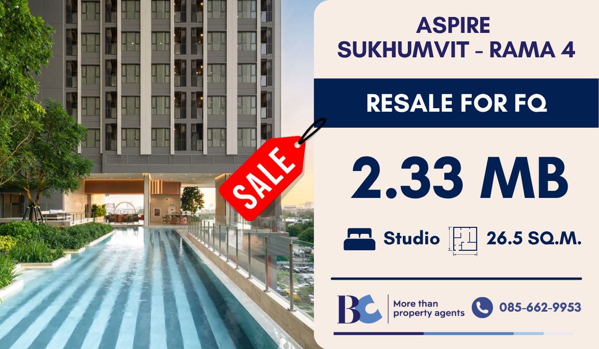 ASPIRE SUKHUMVIT - RAMA 4 Resale unit | Available for foreigner quota ✓ Type: Studio 1 Bath ✓ Usage space: 26.5 sq.m. ✨มี Cash Back พิเศษสำหรับลูกค้า BC ค่ะ✨ A credit card is accepted for the reservation. ---------------------------------------------------- สามารถสอบถามข้อมูลก่อนตัดใจสินใจได้ค่ะ🙏🏻 ☏ For more information or to make an appointment, please contact 📞Call : คลิกเพื่อดูเบอร์โทรติดต่อ 💬Line : https://line.me/ti/p/unE5xqRc5E Property Consultant By Bangkok Citismart Co., Ltd.