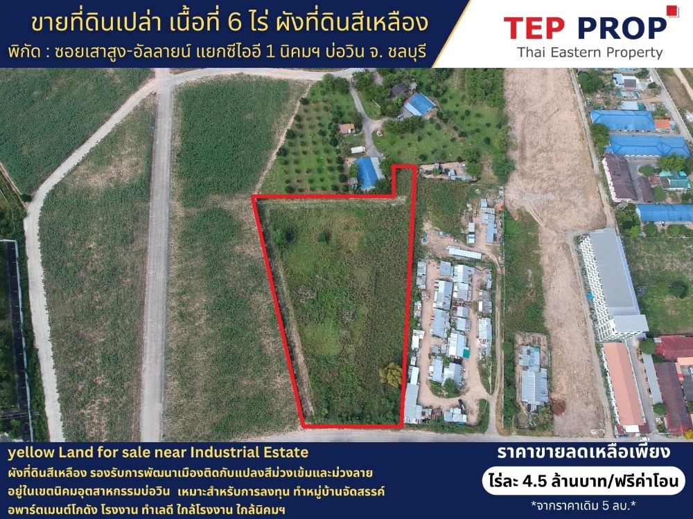 📣TP. #ขายที่ดินบ่อวินศรีราชา #ที่ดินทำเลดีติดนิคมบ่อวิน #ที่ดินใกล้นิคมอุตสาหกรรมอมตะนคร #ลดแรงงงงงง #ขายที่ดินเปล่า #ที่ดินบ่อวิน #ที่ดินศรีราชา #ที่ดินทำเลด่วน #ขายที่ดินบ่อวินศรีราชา 💛yellow Land for sale near Industrial Estate 💛 เหมาะสำหรับการลงทุน ทำหมู่บ้านจัดสรร อพาร์ตเมนต์โกดัง โรงงาน ทำเลดี ใกล้โรงงาน ใกล้นิคมฯ 📣ขายด่วน !!! ที่ดินเปล่า ขนาดเนื้อที่ 6 ไร่ 📍พิกัด : ซอยเสาสูง-อัลลายน์ แยกซีไออี1 นิคมฯบ่อวิน 💥ลดเหลือ ไร่ละ 4 ลบ. เท่านั้น/พร้อมฟรีค่าโอน/ลดราคาลงอีกจากเดิม 4.5 ลบ.**💥 ** ขายต่ำกว่าราคาตลาด ** - ใกล้ถนน สาย 331 - ใกล้โรงพยาบาลปิยะเวช บ่อวิน ศรีราชา ชลบุรี - ใกล้นิคมอุตสาหกรรมเหมราชชลบุรี - ใกล้นิคมอุตสาหกรรมอมตะซิตี้ - ใกล้นิคมอุตสาหกรรมเหมราชอีสเทิร์นซีบอร์ด - ใกล้นิคมอุตสาหกรรมอีสเทิร์นซีบอร์ด (ระยอง) 💛ผังที่ดินสีเหลือง รองรับการพัฒนาเมือง อยู่ในเขตนิคมอุตสาหกรรมบ่อวิน ติดกับแปลงสีม่วงเข้มและม่วงลาย💜 #ดูแลจบครบทุกขั้นตอนจนถึงวันโอน #ดำเนินการเรื่องสินเชื่อธนาคารฟรี *********** Q&A | Viewing ********** ✡ สอบถามข้อมูล / นัดชมสถานที่ ✡ 📲 คุณยูบี : คลิกเพื่อดูเบอร์โทรติดต่อ Line id : @thaieasternpro หรือ คลิกที่นี่ ⤵️⤵️⤵️ https://lin.ee/nWNOeEk Facebook : @thaieasternproperty E-mail : คลิกเพื่อดูอีเมล 🌐 www.thaieasternproperty.com 🌐www.อสังหาตะวันออก.com -------------------- #รับฝากขายฝากเช่าอสังหาริมทรัพย์ทุกประเภท 🏡 🏘🏫🏥🏪🏦🏢🏞🏖🏗🛳 #TEPprop #ThaiEasternProperty #Uconsultancy #ยูคอนซัลแทนซี่ #บ้านและที่ดินในชลบุรี #UBproperty #RealEstateAgentinThailand #นายหน้ามืออาชีพชลบุรี #ทีมงานนายหน้าอสังหาฯมืออาชีพ #อสังหาริมทรัพย์ #กรุงเทพและปริมณฑล #EEC #ชลบุรี #บางแสน #ศรีราชา #พัทยา #ระยอง ... @Yuubii Property