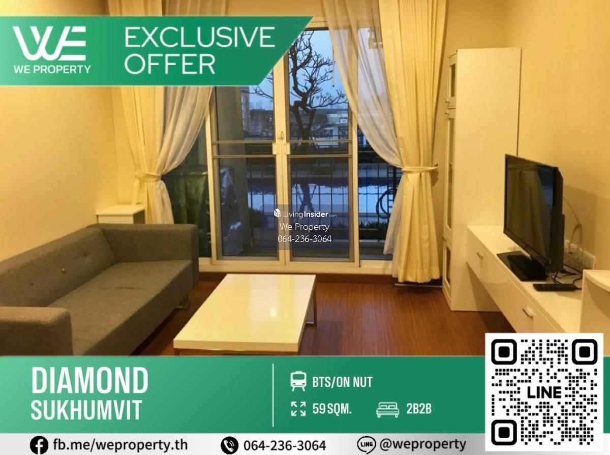 รหัสทรัพย์ (AUM02) Diamond Sukhumvit (ไดมอนด์ สุขุมวิท) 2 ห้องนอน 2 ห้องน้ำ ขนาด 58.8 ตร.ม. ชั้น 5 ทิศเหนือไม่ร้อน ห้องตกแต่งเฟอร์นิเจอร์ครบ พร้อมเครื่องใช้ไฟฟ้า ราคาดีมาก ขายเพียง 4,900,000 บาท เท่าน