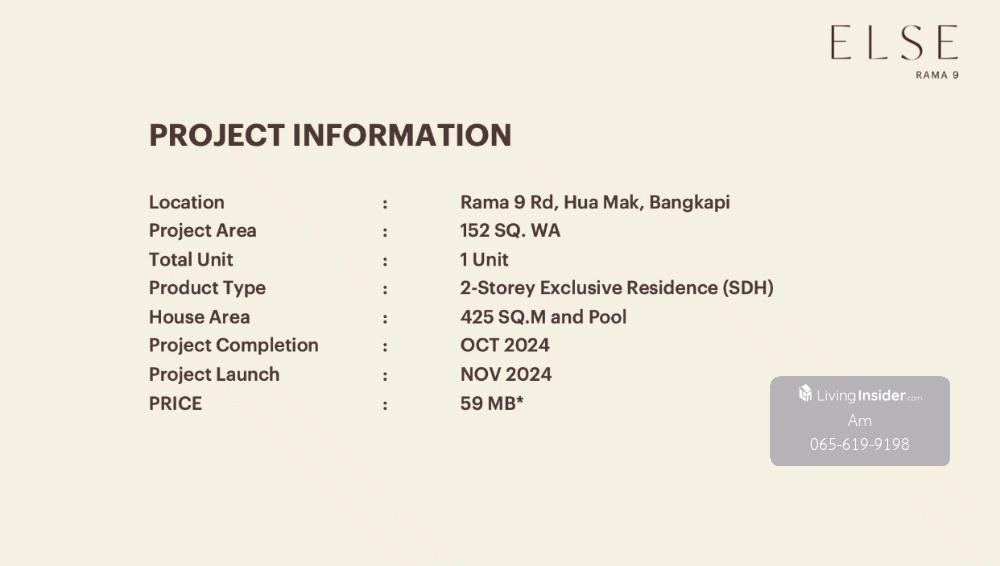 ELSE Rama 9: 152 sqwah 425 sqm. with private pool 4bed 5bath + maidroom 2 storey 3 parking Sell: starts 59,000,000 Readied to move in❗️ Call/Line: Am คลิกเพื่อดูเบอร์โทรติดต่อ https://line.me/ti/p/_MXfrDHcUp Whatsapp/Wechat: คลิกเพื่อดูเบอร์โทรติดต่อ - Super Prime location in Ramkamhang 12 opposite The Mall Ramkhamhaeng ❗️ - MRT Ramkhamhaeng 12 station 0.8 km.❗️ - Sirat Expressway 2.5 km. - Chalong Rat Expressway 3 km. - Motorway 5 km. - 2 storey house with private pool - Stand alone 1 house not in compound By Sansiri School: - Ekkamai International School 4.4 km. - St. Andrew International School 4.5 km. - Wellington College 9 km. - Brighton College 9.5 km. Hospital: - Bangkok Hospital 5 km. - Samitivej Sukhumvit Hospital 6km. - Samitivej Srinakarin Hospital 5.5 km. Shopping Mall: - Foodland 2.5 km. - The Mall RamKhamhaeng 3 km. - The Nine 3 km. - J Avenue Thonglor 5.6 km. #elserama9forsell #elseforsell #elserama9 #singlehouseforsell #singlehouserama9forsell #singlehouseramkhamhaengforsell #singlehousewithprivatepoolforsell #houseforsellnearinternational school #ขายบ้านเดี่ยว #ขายบ้านเดี่ยวมีสระว่ายน้ำ #ขายบ้านเดี่ยวรามคำแหง #ขายบ้านเดี่ยวพระราม9 #ขายบ้านเดี่ยวใกล้โรงเรียนนานาชาติ #ขายบ้านเดี่ยวใกล้ทองหล่อ #ขายบ้านเดี่ยวใกล้เอกมัย #ขายบ้านเดี่ยวใกล้standrew #propertytown