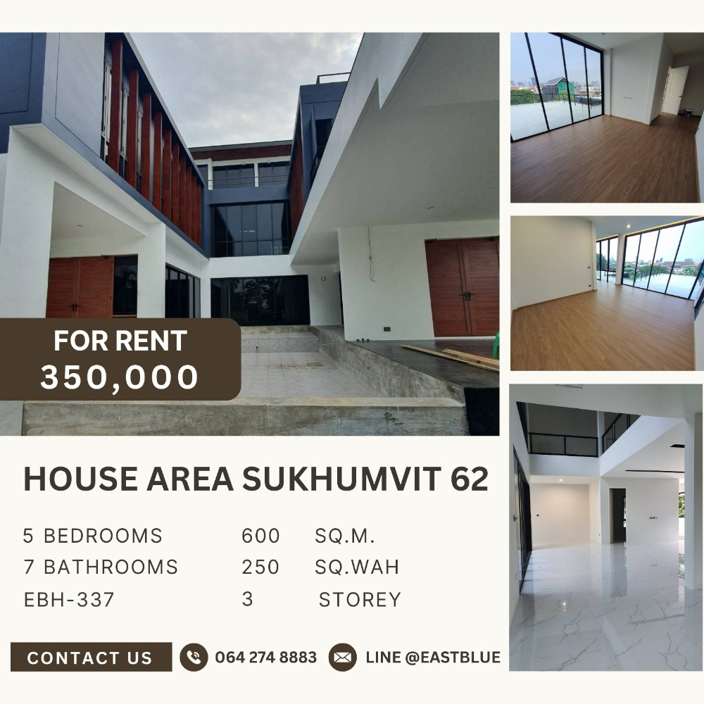 ให้เช่าบ้านเดี่ยว 3 ชั้น เนื้อที่ 250 ตร.วา