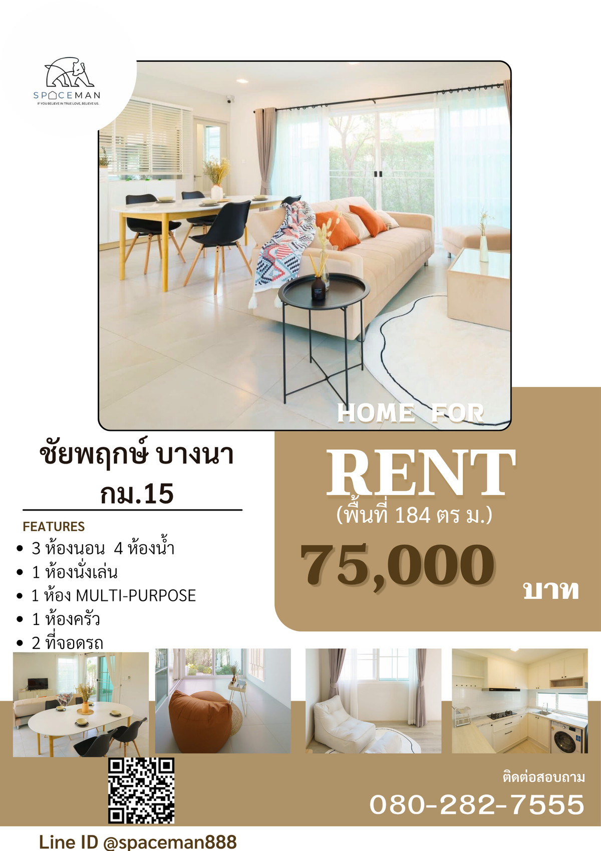 ✅ ราคาเช่า 75,000 บาท/เดือน 🏡❤️ เช่าบ้าน ชัยพฤกษ์ บางนา กม.15 (Chaiyapruek Bangna KM.15) ตกแต่งสวย ใกล้Mega บางนา ➡️ พื้นที่ 60.59 ตร ว. / พื้นที่ใช้สอย 184 ตร ม. ➡️ 3 ห้องนอน 🛁 4 ห้องน้ำ ➡️ 1 ห้องนั่งเล่น 1 ห้อง multi-purpose ➡️ 1 ห้องครัว 🚙 2 ที่จอดรถยนต์ ⭐️ เฟอร์นิเจอร์และเครื่องใช้ไฟฟ้าครบ ❤️ รับระยะสัญญา 1 ปี ดูแลตลอดสัญญาเช่า ❤️ แรกเข้าชำระ ค่าประกัน 2 เดือน และล่วงหน้า 1 เดือน ❤️ ยินดีรับ co-agent 😊 สนใจติดต่อ คุณมีน (Agent) ☎️ Tel. คลิกเพื่อดูเบอร์โทรติดต่อ Line Official : @spaceman888 #เช่าชัยพฤกษ์บางนา #เช่าบ้านบางนา #เช่าบ้านใกล้เมกะบางนา #ติดทรัพย์