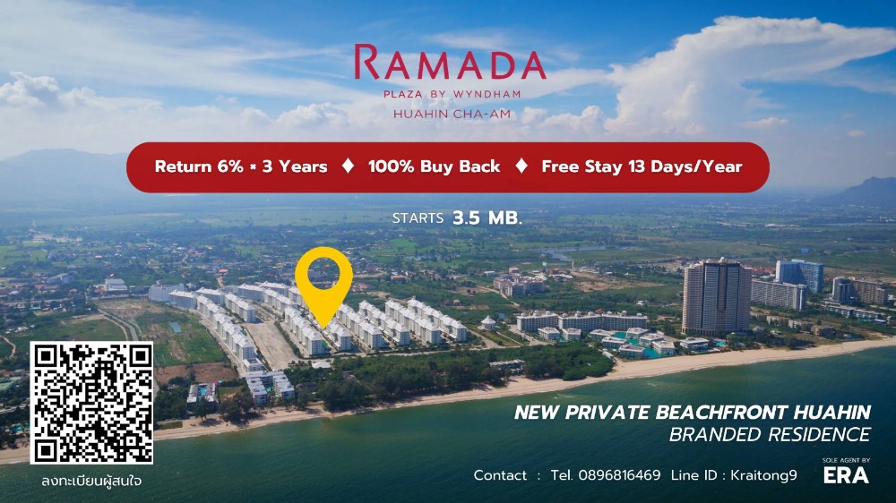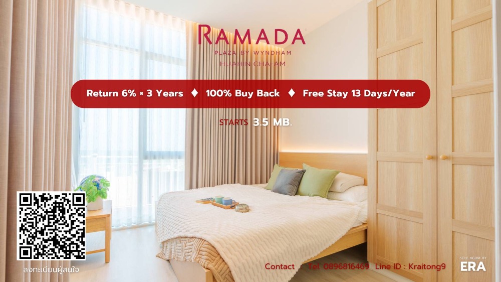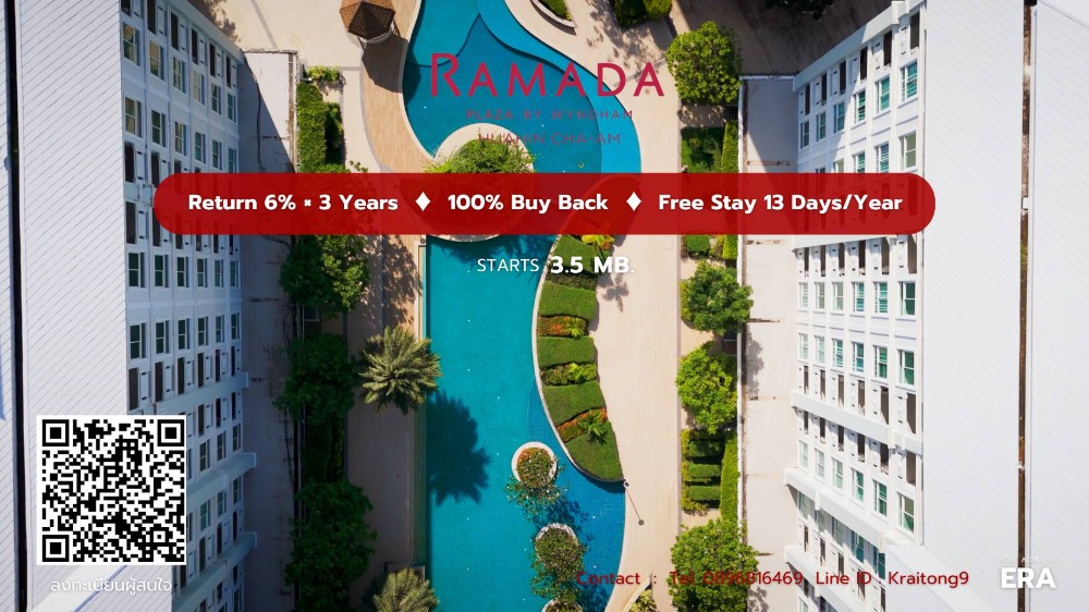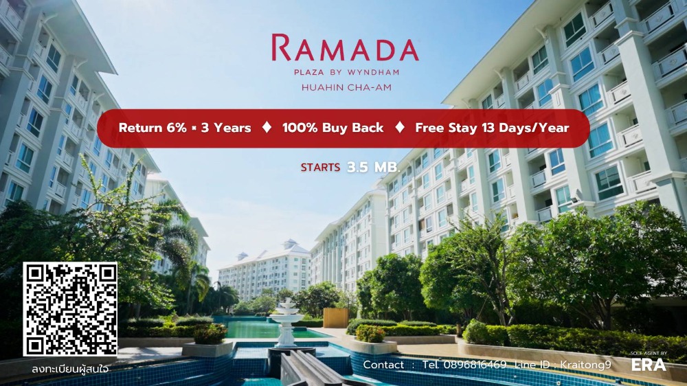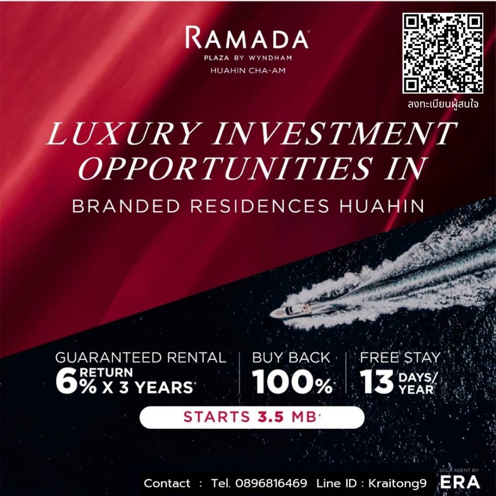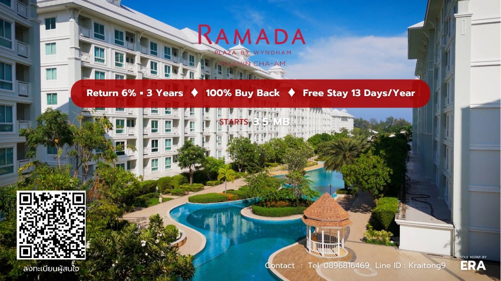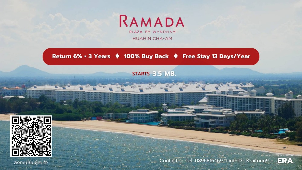 #เปิดจองครั้งแรก #รับผลตอบแทนต่อเนื่อง6%* 3 ปี #รับซื้อคืน100%* 𝐑𝐚𝐦𝐚𝐝𝐚 𝐏𝐥𝐚𝐳𝐚 𝐛𝐲 𝐖𝐲𝐧𝐝𝐡𝐚𝐦 𝐇𝐮𝐚𝐡𝐢𝐧 𝐂𝐡𝐚-𝐚𝐦 Branded Residences เพื่อการลงทุนบนทำเลท่องเที่ยวหัวหิน - ชะอำ ที่มาพร้อมชายหาดส่วนตัว ความยาวกว่า 400 เมตร หมดกังวลเรื่องผู้เช่า ไม่ต้องดูแลเอง บริหารงานโดยเครือโรงแรมระดับโลก Wyndham Hotels & Resorts ที่มีมากกว่า 9,200 แห่ง ใน 95 ประเทศทั่วโลก ราคาเริ่มเพียง 3.5 ล้าน* ลงทะเบียนรับส่วนลดและสิทธิพิเศษจำกัด 20 ยูนิตเท่านั้น เชิญคลิกลิงก์ลงทะเบียนด้านล่างนี้ https://forms.gle/9b8s95YoZ86W9iwh6 . 𝙀𝙓𝘾𝙇𝙐𝙎𝙄𝙑𝙀 20 𝙐𝙉𝙄𝙏𝙎 - รับค่าเช่าล่วงหน้าทันที จ่ายทุกๆ 6 เดือน* - รับค่าเช่าคงที่ 6% นาน 3 ปี* - สิทธิ์เข้าพัก ฟรี 13 คืน / ปี - เมื่อครบ 3 ปี รับซื้อห้องคืน 100% ทันที* - ฟรี เฟอร์นิเจอร์พร้อมตกแต่งมาตรฐานโรงแรม* - ฟรีทุกค่าใช้จ่าย* - ไม่ต้องปล่อยเช่าหรือดูแลผู้เช่าเอง* สามารถสอบถามข้อมูลเพิ่มเติมหรือติดต่อได้ที่ : ERA ตัวแทนขายที่ได้รับการแต่งตั้งอย่างเป็นทางการ ( Sloe Agent ) ชมคลิปบรรยากาศโครงการบน YouTube คลิก : https://youtu.be/-So-DNxCD88?si=sdInuG43Kg_Ql5Xs เชิญติดต่อ : คุณสาธิต สงวนศักดิ์พัฒน์ (ไกร) Assistant Sales Director ERA Property Network Co., Ltd. Tel : คลิกเพื่อดูเบอร์โทรติดต่อ LINE ID : Kraitong9 หรือสามารถสแกน QR Code ท้ายคลิปได้เลย *เงื่อนไขเป็นไปตามที่บริษัทกำหนด #ERAThailand #RAMADA #Wyndham #RamadaPlazabyWyndhamHuahinChaam #Huahin #Chaam #LuxuryLiving #Investor #InvestmentOpportunity #InvestmentProperty #คอนโดหัวหิน #คอนโดชะอำ #คอนโดติดทะเล #โรงแรมติดทะเล #คอนโดติดทะเล #คอนโดเพื่อการลงทุน #ลงทุนคอนโด #นักลงทุน #ERA