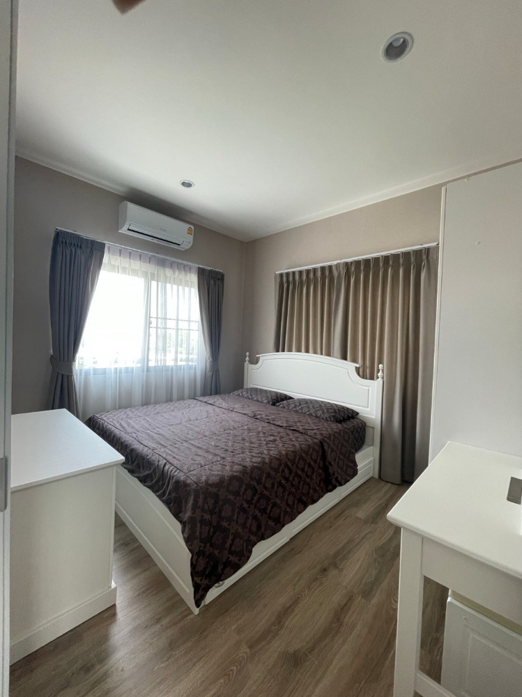 บ้านเดี่ยว 2 ชั้น 68 ตร.ว. 4 ห้องนอน 3 ห้องน้ำ พื้นที่ใช้สอย 271.6 ตร.ม. บ้านหันหน้าทางทิศเหนือ หลังบ้านไม่ติดใคร พร้อม แอร์ 4 เครื่อง ติดมุ้งลวด ผ้าม่าน ทั้งหลัง ต่อเติมโรงจอดรถแล้ว
