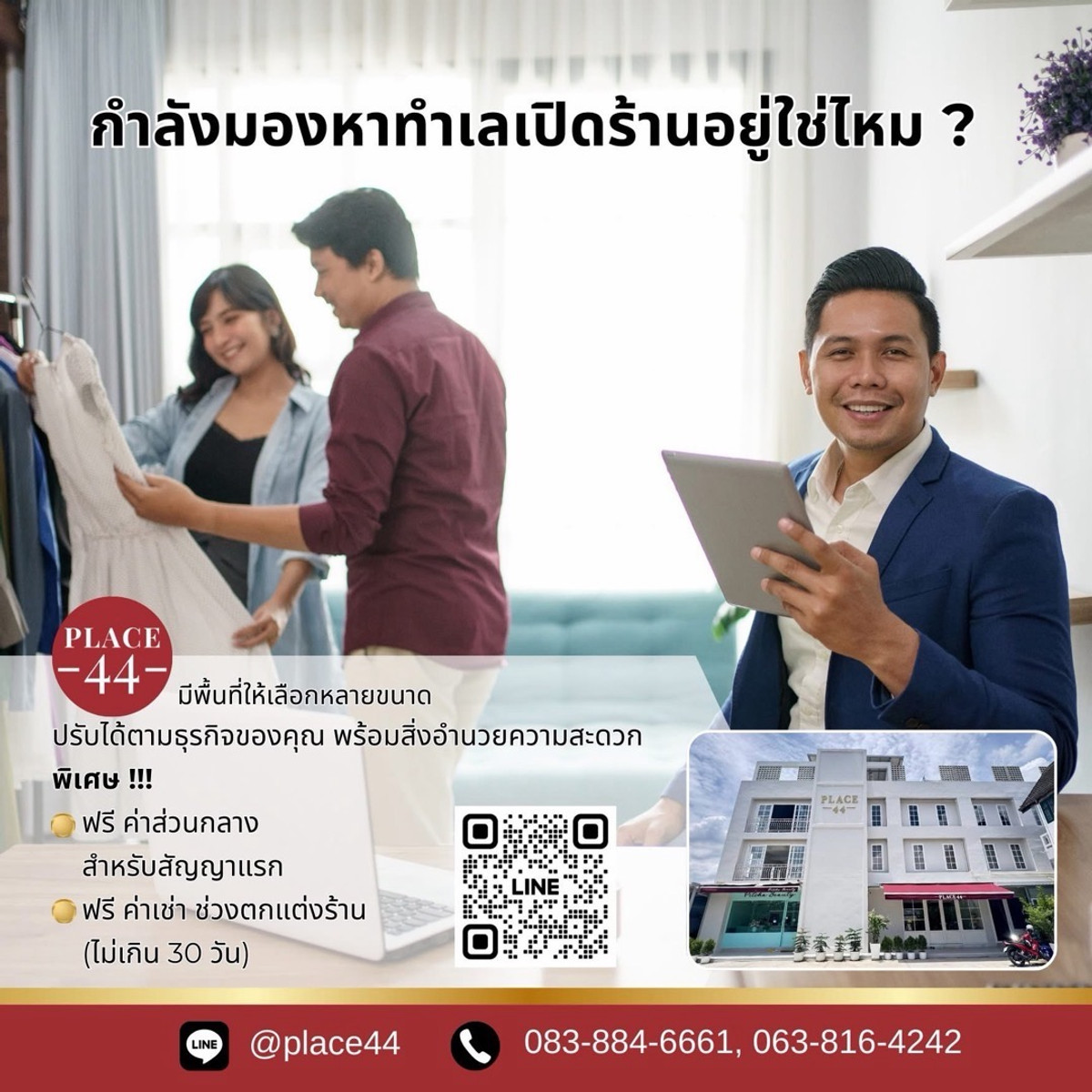 อาคารพาณิชย์/ตึก 3 ชั้นแบ่งพื้นที่ให้เช่าภายในอาคาร ** โปรโมชั่น พิเศษ ** -ที่ตั้ง เลขที่ 1 ซ.รามอินทรา 5 แยก 24 แขวงท่าแร้ง เขตบางเขน กรุงเทพ 10220 -ทางเข้า ซ.เทพรักษ์ 44 -ห่างจากถนนใหญ่ 100 ม. -ห่างจากห้างสรรพสินค้าแม็คโคร 200 ม. -อาคารตั้งอยู่ภายในเขตชุมชน -สัญญาเช่าพื้นที่ 1 -3 ปี -พื้นที่ขนาดเล็กราคาเริ่มต้น 15,000 บาท/เดือน -แบ่งเช่าพื้นที่เริ่มต้นขนาด 28 - 264 ตรม. -ตกแต่งใหม่ ปรับปรุงโครงสร้างที่ทันสมัย -เหมาะสำหรับประกอบธุรกิจความงาม,ธุรกิจออนไลน์,ร้านกาแฟ,ร้านอาคาร,ออฟฟิศ -มีที่จอดรถ โทรสอบถาม. คลิกเพื่อดูเบอร์โทรติดต่อ (คุณมุก) , คลิกเพื่อดูเบอร์โทรติดต่อ (คุณรัก), คลิกเพื่อดูเบอร์โทรติดต่อ (อีฟ) LINE ID : @place44 Facebook : https://www.facebook.com/PitchAsset?mibextid=LQQJ4d https://www.facebook.com/share/17YRCtedf1/?mibextid=wwXIfr E-mail : คลิกเพื่อดูอีเมล