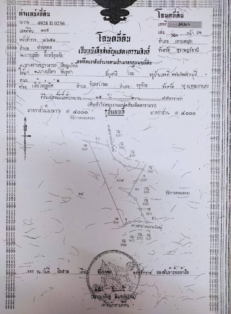 ขายที่ดิน เกาะสมุย 15 ไร่ 3 งาน วิวทะเล ถูกที่สุด