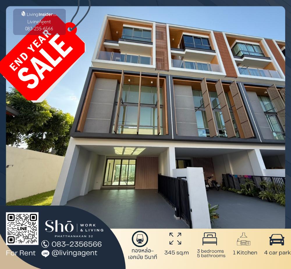 Premium Home Office [บ้านเปล่า] ย่านพัฒนาการติดทองหล่อ-เอกมัย พร้อมเฟอร์นิเจอร์สำนักงาน เพดานสูง Double Space ทำเลทองใจกลางเมือง เพียง 5 นาทีจากทองหล่อ SHO โช พัฒนาการ 32 ทาวน์โฮมหรู 4.5 ชั้น ขนาดใหญ่ เพดานสูงแบบ Double Space ทำเลทองใจกลางเมือง หมาะกับทำเป็นที่อยู่อาศัยหรือโฮมออฟฟิศ มีห้องประชุมและรองรับลิฟท์ส่วนตัว พร้อมสวนหลังบ้าน ฟังก์ชั่นครบ บ้านมีความโปร่ง สบาย อากาศหมุนเวียนได้เป็นอย่างดี พร้อมให้ความหรูหรา และมีเอกลักษณ์ ------------------------------------------------------------------------------------- 🚩ทำเลศักยภาพ สู่ใจกลางเมือง ถึง เอกมัย-ทองหล่อเพียง 5 กม. ลดราคาแบบจัดเต็ม ยิ่งเช่านาน ยิ่งคุ้ม 🔥🔥 💥 ราคา 90,000บาท/เดือน [บ้านเปล่าไม่รวมเฟอร์นิเจอร์] ▶▶ ข้อมูลและรูปภาพเพิ่มเติมโครงการ : https://www.sho-phattanakarn32.com/ ✨✨✨ ------------------------------------------------------------------------------------- ⭐️ ฟังก์ชั่นบ้าน: - 2 ส่วนออฟฟิศ - 1 ห้องประชุม - 1 ห้องรับแขก - 2 ห้องผู้บริหาร - 1 ห้องนอน - 5 ห้องน้ำ ⭐️ หน้ากว้างถึง 6 เมตร พื้นที่ใช้สอย 345 ตร.ม. ⭐️ รองรับลิฟท์ส่วนตัว ⭐️ สระว่ายน้ำระบบเกลือ แยกสระเด็ก ยาว 14 เมตร, Co-Working Space รองรับการคุยงานแบบเป็นส่วนตัว, สวนส่วนกลางพร้อมพื้นที่นั่งพักผ่อนบรรยากาศร่มรื่น ⭐️ ระบบรักษาความปลอดภัย กล้อง CCTV รอบโครงการ พร้อมเจ้าหน้าที่รักษาความปลอดภัยตลอด 24 ชม. . 🚗 ใกล้ย่านธุรกิจ เดินทางสะดวก ใกล้ทองหล่อ-เอกมัย เพียง 5 กม. 📍 ใกล้ทางด่วนรามอินทรา-อาจณรงค์ และทางด่วนพิเศษฉลองรัช 📍 ใกล้รถไฟฟ้า BTS อ่อนนุช และ Airport Rail Link สถานีรามคำแหงและสถานีหัวหมาก 📍 ใกล้สถานศึกษา (มหาวิทยาลัยเกษมบัณฑิต, สถาบันเทคโนโลยีไทย-ญี่ปุ่น, โรงเรียนนานาชาติเซนต์มาร์ค, โรงเรียนนานาชาติBCIS, โรงเรียนเตรียมอุดมพัฒนาการ) 📍 ใกล้โรงพยาบาลชั้นนำ (โรงพยาบาลวิภาราม พัฒนาการ,โรงพยาบาลกรุงเทพ, โรงพยาบาลสมิติเวช ศรีนครินทร์, โรงพยาบาลกล้วยน้ำไท, โรงพยาบาลสุขุมวิท) 📍 ใกล้ห้างสรรพสินค้า และ Supermarket (London Street, Park Plaza พัฒนาการ 20, Max valu, The Nine พระราม 9, Tesco Lotus, Makro, Big C) . "เพราะบ้านเป็น...มากกว่าบ้าน" ระบบรักษาความปลอดภัย: ✔️พนักงานรักษาความปลอดภัยตลอด 24 ชั่วโมง ✔️CCTV รอบโครงการ ที่ตั้งโครงการ: ซอยพัฒนาการ 32 แขวงสวนหลวง กรุงเทพมหานคร ___________________________________________ ติดต่อสอบถามเพิ่มเติมหรือนัดดูสถานที่ ที่นี่เลย: ☎️ คลิกเพื่อดูเบอร์โทรติดต่อ (คุณพลอย AG) 📱 Line: @livingagent หรือแอด link : https://lin.ee/8o3n2b0 ตลอด 7 วันต่อสัปดาห์ครับ *เงื่อนไขเป็นไปตามที่บริษัทกำหนด