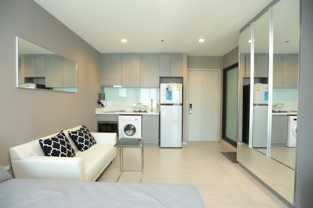 RHYTHM Sukhumvit 36-38 studio, 1ห้องน้ำ ชั้น 15 ขนาด 24 ตร.ม. 19,000 บาท/เดือน (สัญญา 1 ปี) ห้องตกแต่งพร้อมอยู่ เฟอร์นิเจอร์และเครื่องใช้ไฟฟ้า - ใกล้รถไฟฟ้า BTS ทองหล่อ 350 เมตร - ใกล้ Rain Hill, Tops