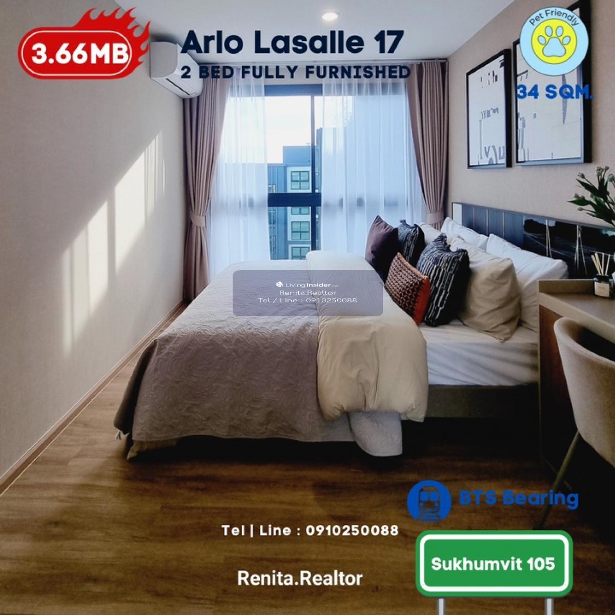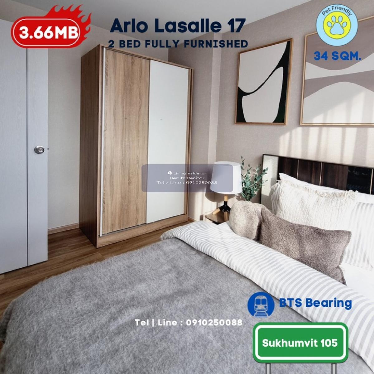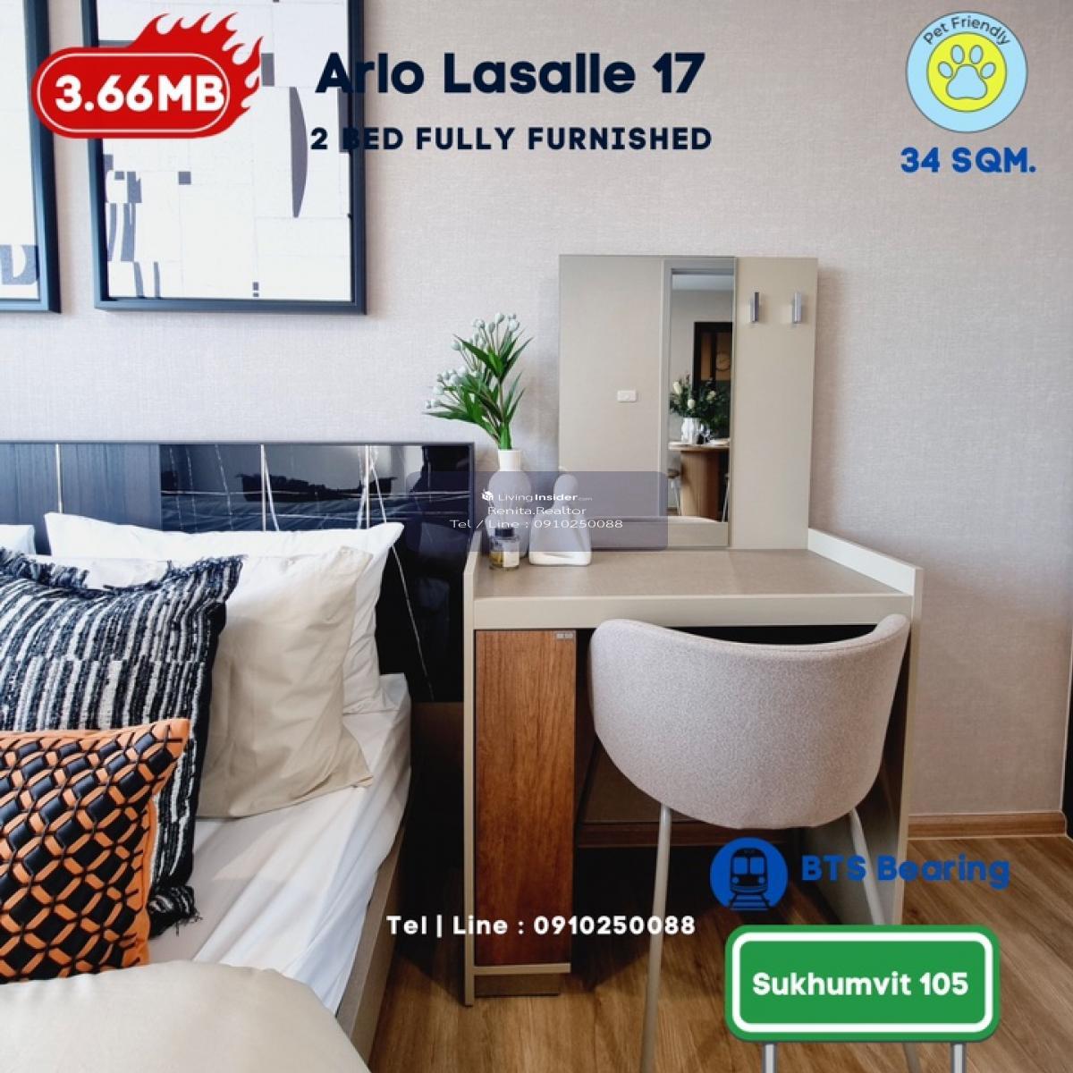 ARLO Sukhumvit 105 – Lasalle 🏢 รายละเอียดห้องพัก • 2 ห้องนอน 1 ห้องน้ำ ขนาด 44 ตารางเมตร • พื้นที่กว้างขวาง เหมาะสำหรับการพักอาศัยแบบครอบครัว • พร้อมเฟอร์นิเจอร์ครบชุด และเครื่องใช้ไฟฟ้า • ดีไซน์ทันสมัย พร้อมเข้าอยู่ได้ทันที 🌟 สิ่งที่คุณจะได้รับ • คอนโด Pet-Friendly ที่มอบความสุขทั้งคุณและสัตว์เลี้ยง • ทำเลศักยภาพ ใกล้ BTS และสิ่งอำนวยความสะดวกครบครัน • ไม่รับเฟอร์นิเจอร์ เริ่มต้นเพียง 3.49 ล้านบาท • พร้อมเฟอร์นิเจอร์ เริ่มต้นเพียง 3.66 ล้านบาท 📞 สนใจสอบถามข้อมูลเพิ่มเติมหรือนัดชมโครงการ ติดต่อ เรนิตา (ฝ่ายขาย พร้อมปล่อยเช่า) โทร: คลิกเพื่อดูเบอร์โทรติดต่อ Line ID: homeforhope 💬 รีบด่วนก่อนหมด!