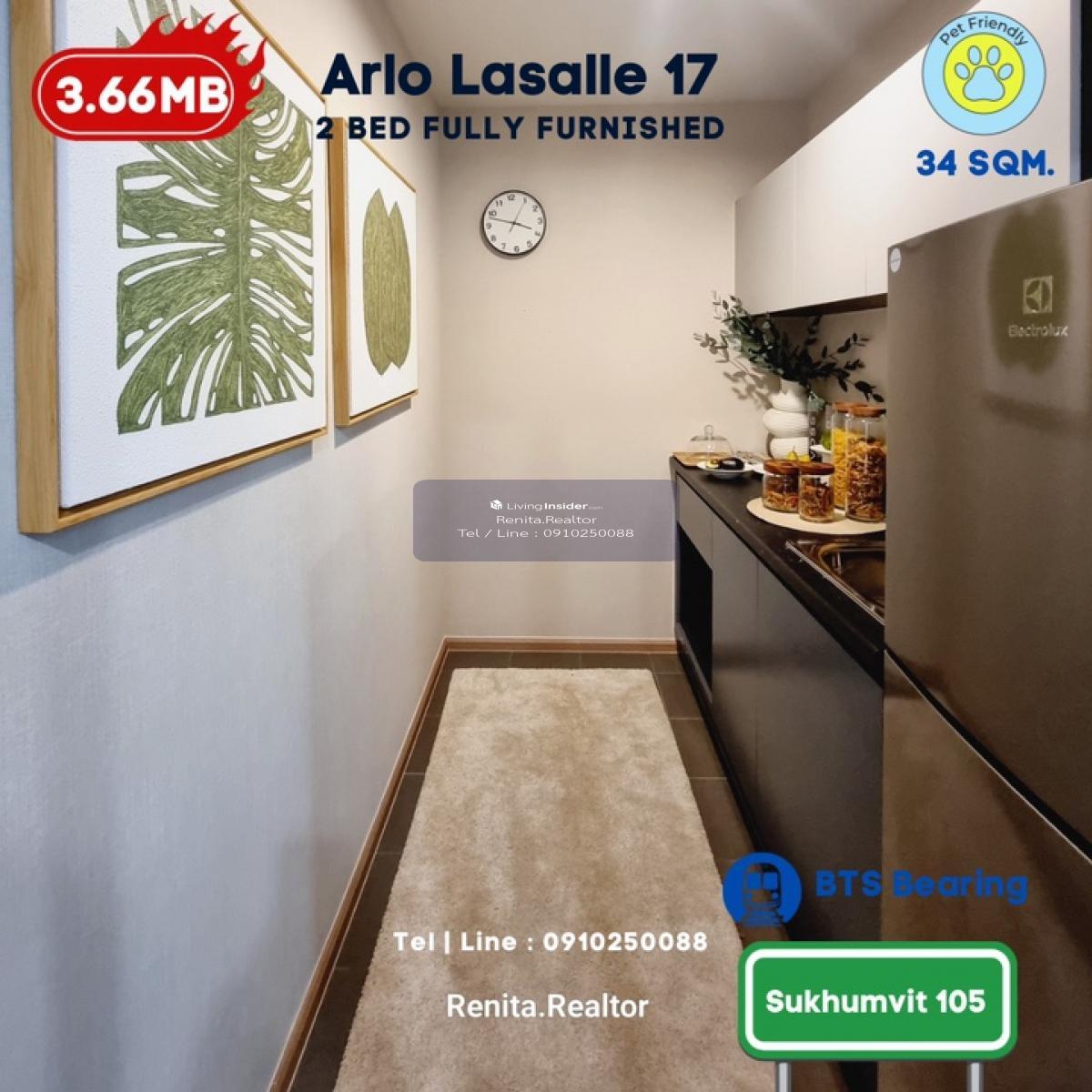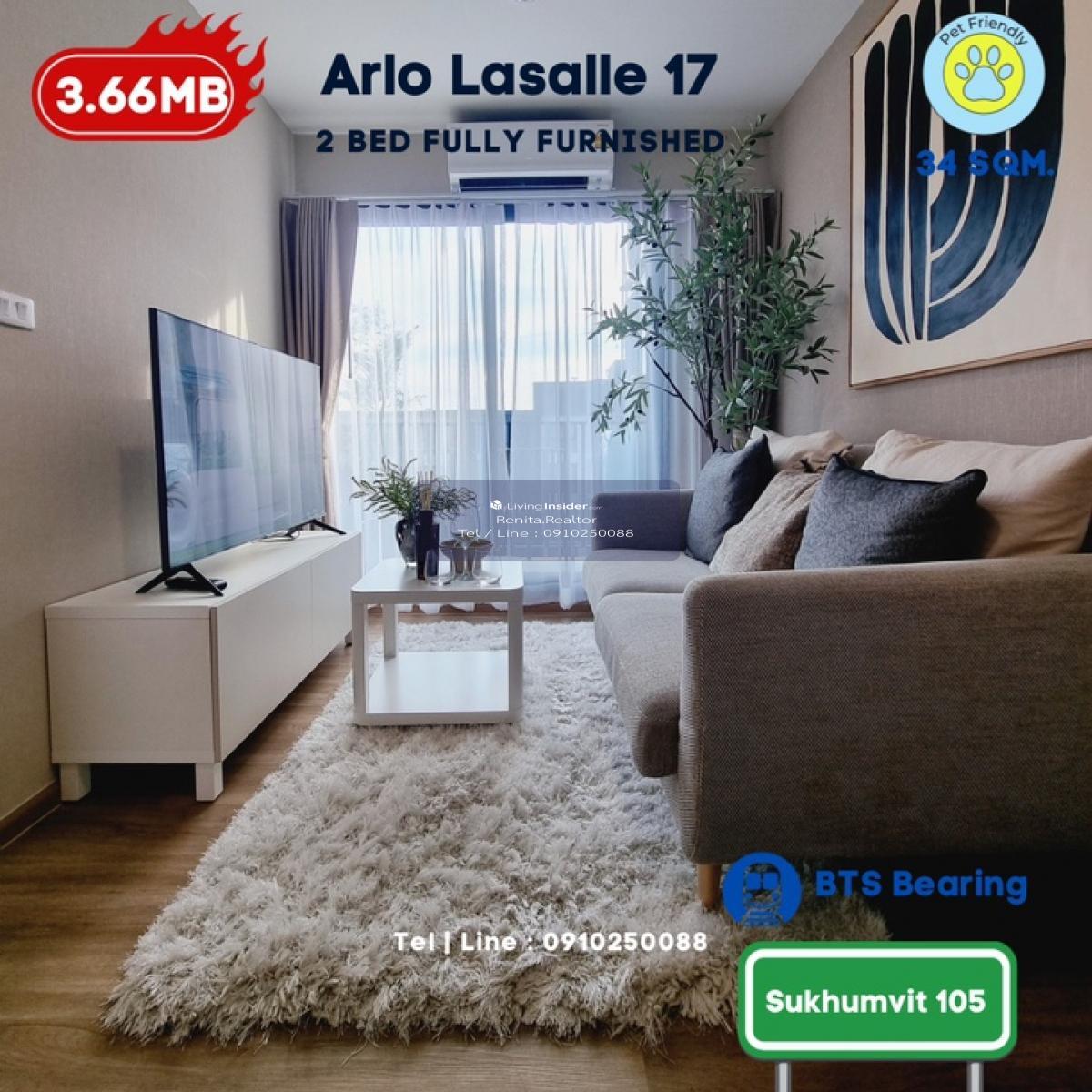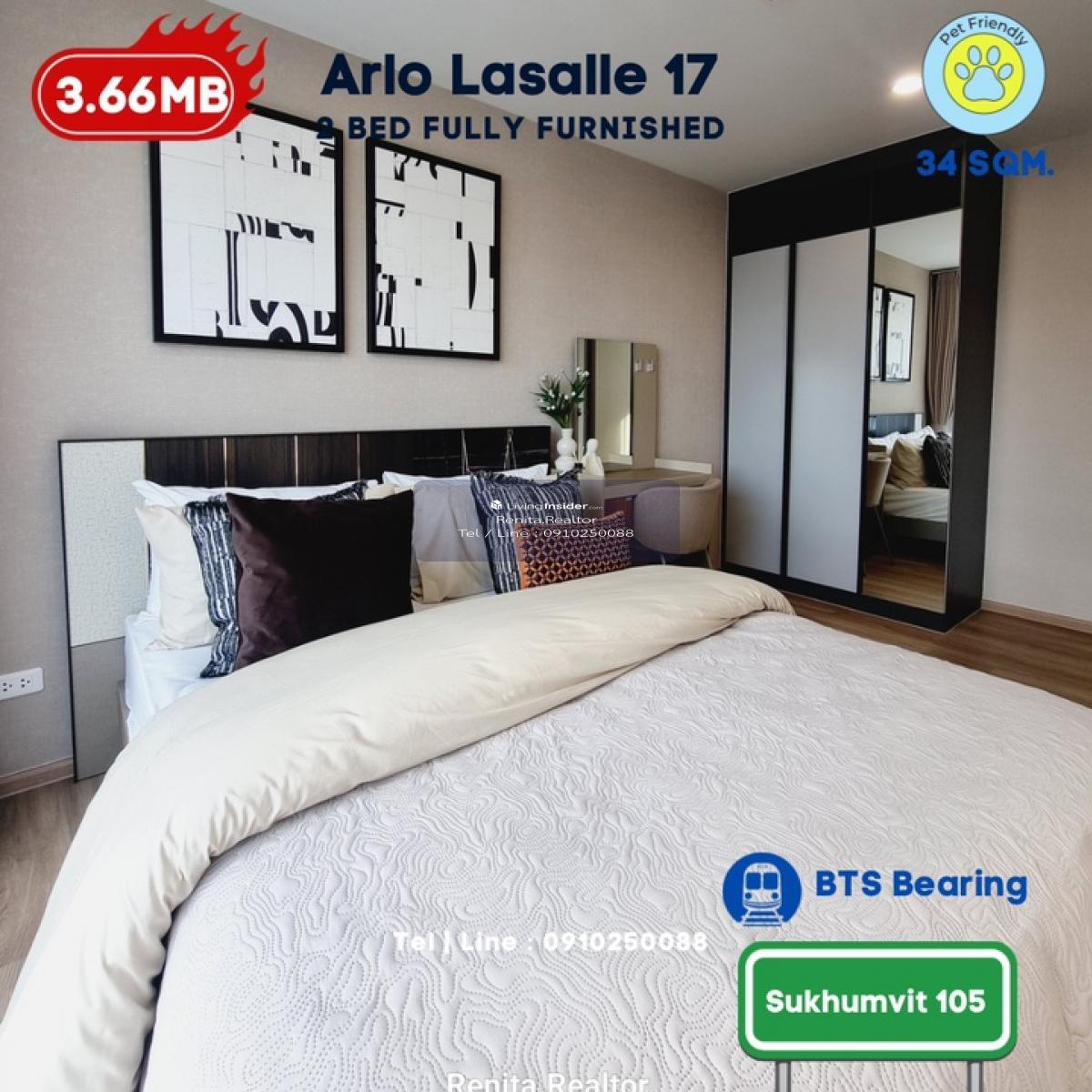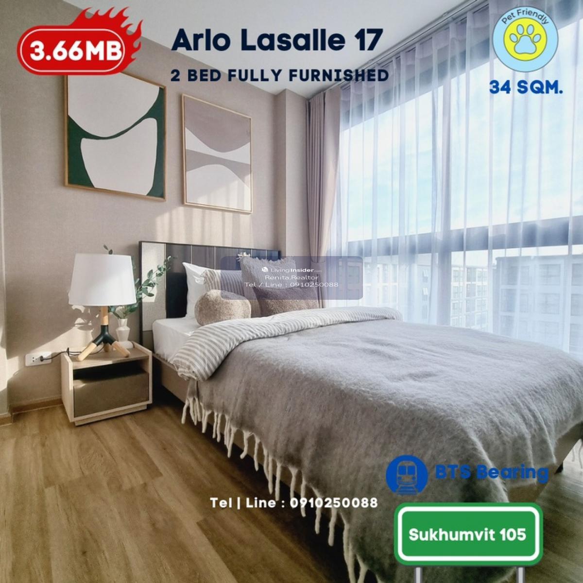 ARLO Sukhumvit 105 – Lasalle 🏢 รายละเอียดห้องพัก • 2 ห้องนอน 1 ห้องน้ำ ขนาด 44 ตารางเมตร • พื้นที่กว้างขวาง เหมาะสำหรับการพักอาศัยแบบครอบครัว • พร้อมเฟอร์นิเจอร์ครบชุด และเครื่องใช้ไฟฟ้า • ดีไซน์ทันสมัย พร้อมเข้าอยู่ได้ทันที 🌟 สิ่งที่คุณจะได้รับ • คอนโด Pet-Friendly ที่มอบความสุขทั้งคุณและสัตว์เลี้ยง • ทำเลศักยภาพ ใกล้ BTS และสิ่งอำนวยความสะดวกครบครัน • ไม่รับเฟอร์นิเจอร์ เริ่มต้นเพียง 3.49 ล้านบาท • พร้อมเฟอร์นิเจอร์ เริ่มต้นเพียง 3.66 ล้านบาท 📞 สนใจสอบถามข้อมูลเพิ่มเติมหรือนัดชมโครงการ ติดต่อ เรนิตา (ฝ่ายขาย พร้อมปล่อยเช่า) โทร: คลิกเพื่อดูเบอร์โทรติดต่อ Line ID: homeforhope 💬 รีบด่วนก่อนหมด!