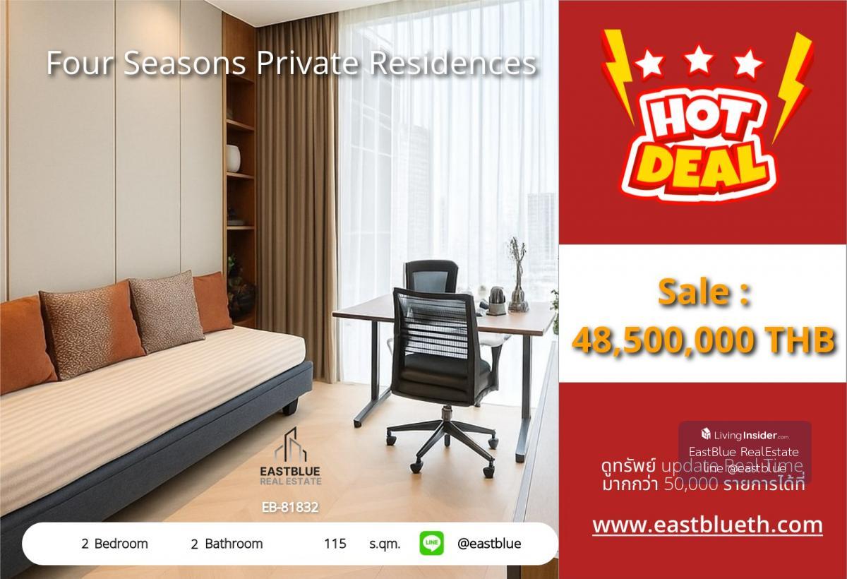 Project : Four Seasons Private Residences ID : EB-81832 2 Bed 2 Baht Size :115 sqm Selling Price : 48,500,000 - Contact, Appointment for viewing. Line: @eastblue / https://lin.ee/yNwHbFs WhatsApp: คลิ