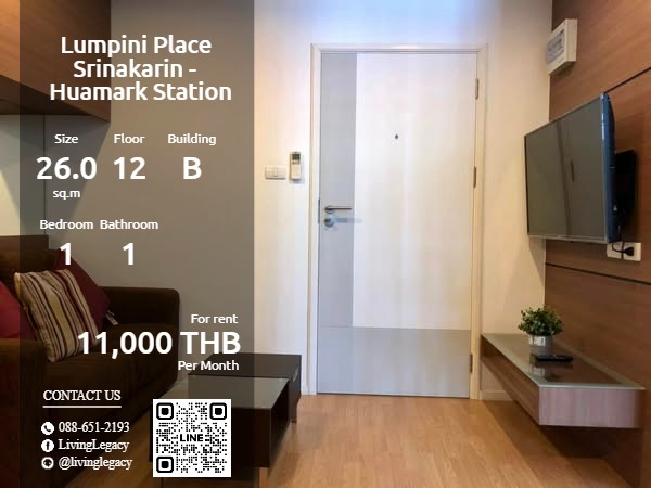 SO8KUI ให้เช่าคอนโด Lumpini Place Srinakarin - Huamark Station 26.05 ตร.ม. ชั้น 12 ตึก B line id : @livinglegacy