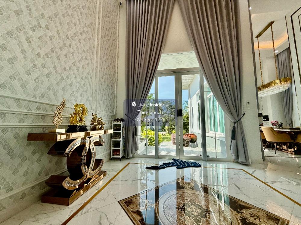 ขายบ้านเดี่ยว บ้านพักตากอากาศพร้อมร้านกาแฟ และ สระว่ายน้ำ 2ไร่ เขาชีจรรย์ สัตหีบ ชลบุรี Garden Pool Villa ----------------------------------------------------------------------------------- ที่ดิน ขนาด 2 ไร่ ประกอบด้วย 1.บ้านชั้นเดียว ยกสูง มีห้องเก็บของขนาดใหญ่ใต้บ้าน พื้นที่ใช้สอย 270 ตร.เมตร หันทิศใต้ มี 2 ห้องนอน 3 ห้องน้ำ 1 ห้องพระ 1 ห้องครัว 1 ห้องนั่งเล่น 2.สระว่ายน้ำ ขนาด 10x5 เมตร 3.อาคารเอนกประสงค์ ( ทำเป็นห้อง Fittness หรือ เรือนรับรอง) 4.สระปลาคราฟ มีสะพานข้าม น้ำตก และ สวนรอบ 5.โรงรถ ขนาดจอดรถ 4 คัน 6.กรงเลี้ยงสุนัข นอกบ้าน 7.เรือน คนงาน หรือ แม่บ้าน 2 ห้องนอน และ ห้องน้ำ 8.เรือนเพาะชำ 9.ร้านกาแฟและอาหาร ห้องกระจก พร้อมเครื่องปรับอากาศ และ ห้องส่วนตัว ขนาด 83 ตร.เมตร 10.สวนต้นไม้ ดอกไม้ น้ำตก พร้อมที่นั่ง สำหรับลูกค้า Check-in ----------------------------------------------------------------------------- การเดินทาง จาก ถ.สุขุมวิท เข้าทาง ถ.1003 (หนองจับเต่า) 2 กม. ห่างจากเขาชีจรรย์ เพียง 4.4 กม. ---------------------------------------- ราคาพิเศษ 39 ล้านบาท ================ สนใจติดต่อ คุณ นุช ; คลิกเพื่อดูเบอร์โทรติดต่อ Line ID ; theeranuch_thee ===================