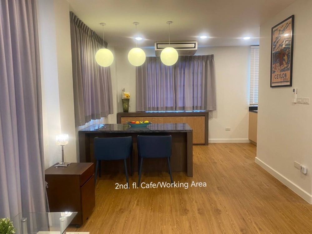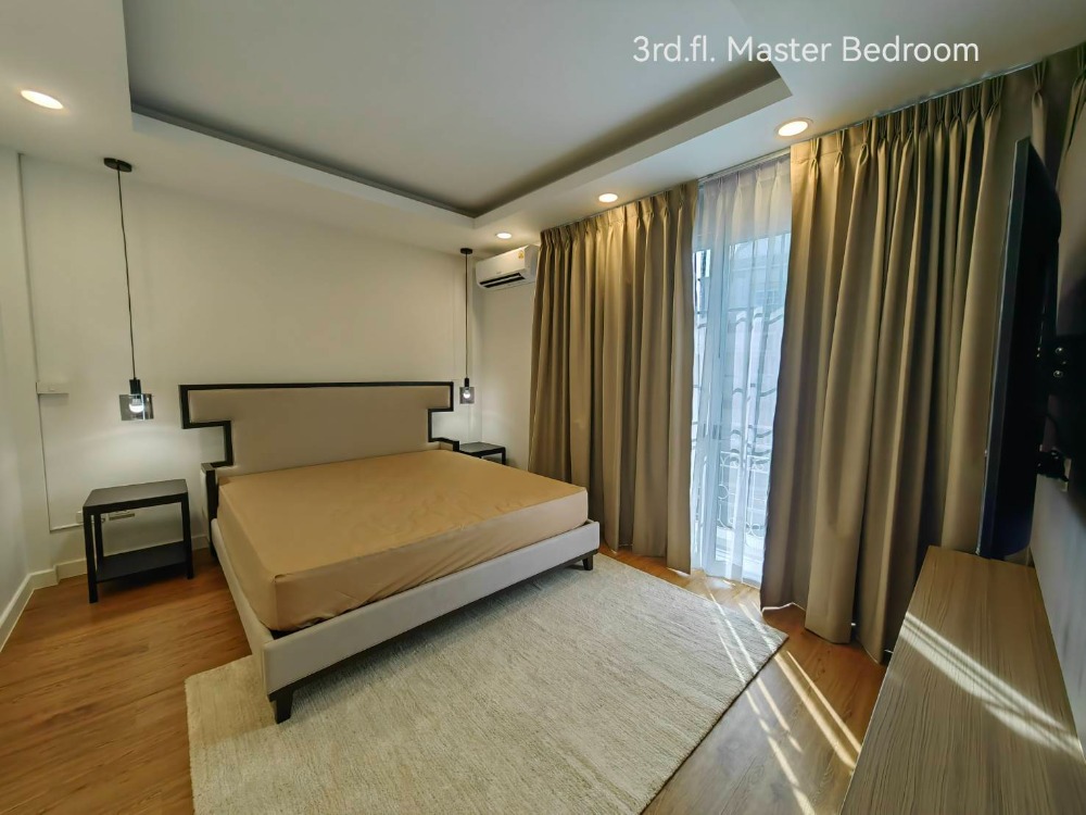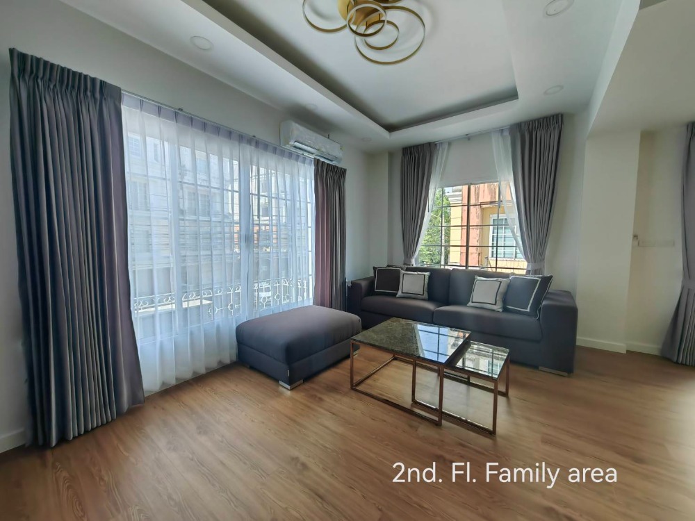 ให้เช่าโฮมออฟฟิศ 4 ชั้น โครงการพลัสพาร์ค อเวนิว ลาซาล-ศรีนครินทร์ ตกแต่งใหม่ สิ่งแวดล้อมดี ใกล้ BTSแบริ่ง และMRTศรีลาซาล โฮมออฟฟิศ 4 ชั้น หลังมุม บนที่ดิน 29.5 ตรว. พื้นที่ใช้สอยประมาณ 300 ตรม. ตกแต่งพร้อมเฟอร์นิเจอร์ครบ เหมาะพักอาศัย หรือ โฮมออฟฟิศ ฯลฯ มี 3ห้องนอน1 ห้องทำงาน (มีห้องน้ำในห้องนอนทุกห้อง) 6 ห้องน้ำ ครัวไทย ครัวแพนทรี ชั้น1 และชั้น2 ที่จอดรถในบ้าน2คัน หน้าบ้าน 2 คัน และจอดขาจรได้อีกหลายคัน และ มีรปภ.24ชม. เครื่องปรับอากาศ 7 ตัว สมาร์ททีวี 4 เครื่อง เครื่องทำน้ำอุ่น 4 เครื่อง ตู้เย็น 2 เครื่อง ประตูรั้วรีโมท ประตูหลักใช้ Digital Doorlock เลี้ยงสัตว์เลี้ยงได้ ให้เช่า 60,000บ/ด. เน็ท ชั้น1 ส่วนทานอาหารมีโต๊ะอาหารหินอ่อนสำหรับ 6 ที่นั่ง , ชุดครัวบิวท์อินในบ้านพร้อมอุปกรณ์เครื่องใช้ไฟฟ้าได้แก่ เตาไฟฟ้า ที่ดูดควัน อ่างล้างจาน เตาอบแบบฝัง ไมโครเวฟ ตู้เย็น , สมาร์ททีวีติดผนัง โถงทางเข้า ครัวไทยพื้นที่กว้างขวาง พร้อมเตาแก๊ส ตู้เคาน์เตอร์เก็บของ ,ซิงค์ล้างจาน, ห้องน้ำ ห้องเก็บของใต้บันได ชั้น2 ชุดแพนทรีประกอบด้วยตู้บิวท์อิน, ซิงค์ล้างจาน, ตู้เย็น, ห้องน้ำ ชุดโต๊ะทำงานหรือทำเป็นส่วนคาเฟ่ ชุดโซฟาพร้อมตู้โชว์บิวท์อิน ชั้น3 ห้องนอนหลัก ตู้เสื้อผ้าบิวท์อิน เตียงขนาด 6ฟุด สมาร์ททีวี ห้องน้ำพร้อมอ่างอาบน้ำ ห้องทำงาน/อเนกประสงค์ ห้องน้ำ ชั้น4 ห้องนอนหลัก ตู้เสื้อผ้าบิวท์อิน เตียงขนาด 6ฟุต ทีวี ห้องน้ำ ห้องนอนรอง เตียงขนาด 6ฟุต ตู้เสื้อผ้า ห้องน้ำ โครงการตั้งอยู่ระหว่างซอยลาซาล 40-42 เดินทางสะดวก เข้าออกได้หลายทาง อาทิ ซอยลาซาล55 ออก ถ.บางนา-ตราด30 ได้ ใกล้ ถนนตัดใหม่ลาซาล-แบริ่ง ถนนสุขุมวิท 105 (ซอยลาซาล) ถนนสุขุมวิท107 (ซอยแบริ่ง) ใกล้ถนนศรีนครินทร์ ห้างสรรพสินค้าใกล้เคียง : ดาดฟ้า ลาซาล, ลาซาล อเวนิว , แม๊กโคร ศรีนครินทร์, บิ๊กซี ศรีนครินทร์, แจ๊สเออเบิร์น ศรีนครินทร์, เซ็นทรัล บางนา, ฯลฯ โรงเรียนใกล้เคียง ร.ร นานาชาติ บางกอกพัฒนา, ร.ร ลาซาล, ร.ร เซ็นต์โยเฟบางนา , โรงเรียนนานาชาติไทย-สิงคโปร์ ฯลฯ โรงพยาบาลใกล้เคียง : รพ.ศิครินทร์, รพ.ไทยนครินทร์, รพ.บางนา1 ฯลฯ คลิกเพื่อดูเบอร์โทรติดต่อ