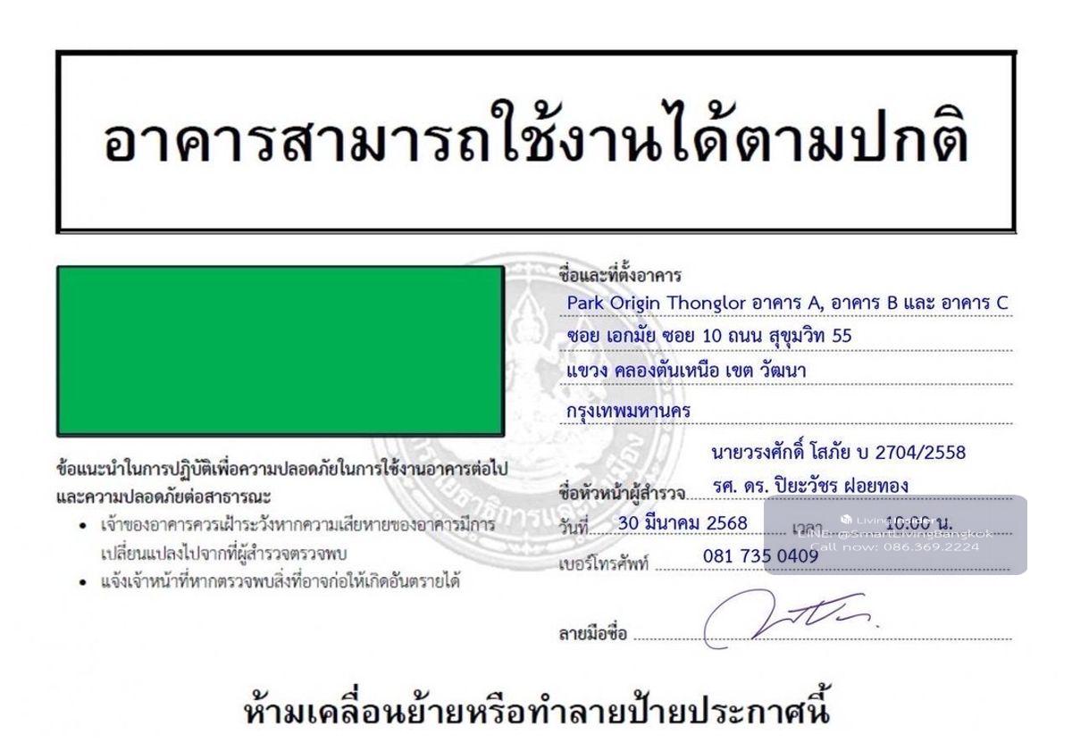 🏠Park Origin Thonglor 📌Code: 241326 💰Sell: 7,980,000 Baht *All inclusive * 🛌 Bedroom: 1 🛀 Bathroom:1 📏Size: 36 sq.m 🚊Location: BTS Thonglor