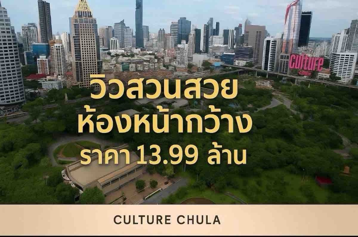Culture Chulaห้องหัวมุม เป็นห้องหน้ากว้าง ห้องขนาด69ตรม. 2ห้องนอน 2สิทธิ์จอดรถ 2ห้องน้ำ ชั้นสวนสวย ทำให้การพักผ่อนเหมือนอยู่บ้าน ราคาถูกกว่าโครงการปัจจุบัน 2ล้านบาท ซื้อตรงเจ้าของห้อง T. คลิกเพื่อดูเบ