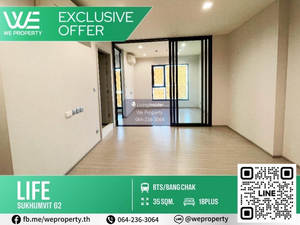 รหัสทรัพย์ (NC-JOB08) Life Sukhumvit 62 (ไลฟ์ สุขุมวิท 62) Type : 1 Bedroom Plus 1 ห้องนอน 1 อเนกประสงค์ 1 ห้องรับแขก 1 ห้องน้ำ ขนาด 35 ตร.ม. ชั้น 12A ทิศตะวันออก ห้องใหม่ สวยเทียบมือ 1 ลมดี วิวไม่โดน