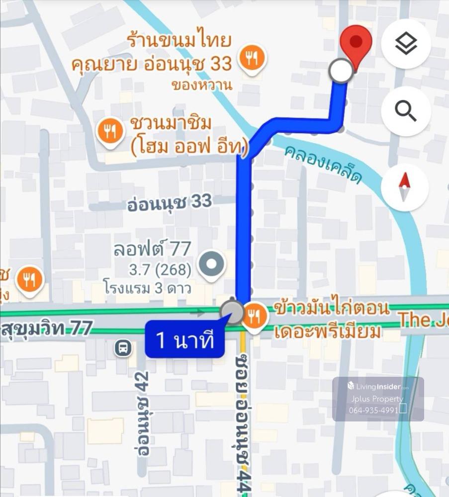 - ขายที่ดินแปลงสวย แถมบ้าน 2 ชั้น เนื้อที่ 62 ตรว. - ที่ดินรูปทรงสี่เหลี่ยม หน้ากว้าง 14 ม. x ลึก 18 ม. - ถนนซอยกว้าง 6 เมตร พร้อมไหล่ทาง รถเข้าออกสะดวก จอดรถได้ 2-3 คัน - สภาพแวดล้อมดี สงบ ไม่วุ่นวาย เหมาะสำหรับ renovate ทำที่อยู่อาศัย / สำนักงาน ออฟฟิศ / การลงทุน จุดเด่นของที่ดิน : - ทำเลดี อยู่ในซอยอ่อนนุช 33 ห่างถนนอ่อนนุช (สุขุมวิท 77) เพียง 200 ม. - การเดินทางสะดวก ใกล้รถไฟฟ้า 2 สาย : สายสีเหลือง สถานีศรีนุช (2 กม.) และสายสีเขียว BTS อ่อนนุช (4 กม.) ใกล้ทางด่วนสุขมวิท 50 และทางด่วนรามอินทรา - อยู่ในย่านธุรกิจ แหล่งชุมชน มีความเจริญ ใกล้ร้านค้า ตลาดสด หาของกินสะดวก ที่ตั้ง : ซอยอ่อนนุช 33 แขวงสวนหลวง เขตสวนหลวง กรุงเทพฯ 10250 สถานที่สำคัญใกล้เคียง : BTS อ่อนนุช, รถไฟฟ้าสายสีเหลือง สถานีศรีนุช, Makro, BigC Extra อ่อนนุช, Lotus สุขุมวิท 50, ตลาดสดอ่อนนุช, ห้าง People Park, ห้างเซ็นจูรี่ อ่อนนุช, รร.นานาชาติเซ็นจูเรี่ยน, รร.นานาชาติเวลล์ส สาขาอ่อนนุช, รพ.สุขุมวิท ***ปรับราคาลงเหลือ!! 5,290,000.- บาท (@ 85,322 บาท) (ค่าใช้จ่ายวันโอนทั้งหมด 50/50)*** สนใจติดต่อ / Contact : Tel. คลิกเพื่อดูเบอร์โทรติดต่อ คุณอุไรวรรณ (จุ๋ม) Line ID : คลิกเพื่อดูเบอร์โทรติดต่อ Email : คลิกเพื่อดูอีเมล บริการรับฝากขาย-ซื้อ-เช่าอสังหาริมทรัพย์ทุกประเภท