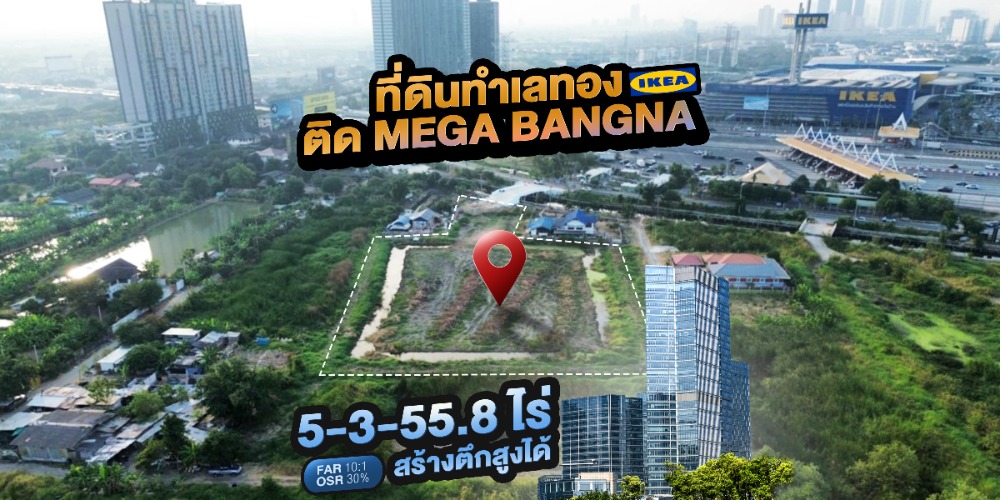 📢🏢 ขายที่ดินทำเลทองใกล้ Mega Bangna & IKEA พื้นที่กว่า 5-3-55.8 ไร่ (2,355.8 ตร.ว.) สำหรับพัฒนาโครงการคอนโด ตึกออฟฟิศ โรงแรม และอื่นๆ ผังส้ม FAR 1:10 OSR 30% *ข้อมูลผังปี 67 ที่ดินทำเลทองใกล้ New CBD Bangna ติดถนนใหญ่เดินทางง่าย ใกล้กับย่านสำคัญหลากหลายเช่น ▪️ MEGA Bangna & IKEA (ฝั่งตรงข้าม) ▪️โรงเรียน D-PREP (550 ม.) ▪️ สนามบินสุวรรณภูมิ ▪️ สนามกอล์ฟเมืองแก้ว และ วินด์มิลล์ ▪️ Parc Bangna (จะเปิดเร็วๆนี้) ▪️ Central Bangna (มีโปรเจครีโนเวทใหญ่ จะเป็นห้างหรู) ▪️ Bangkok Mall (จะเปิดในอนาคต) ▪️ รถไฟฟ้าสายสีเหลือง (7.4 กม) ▪️ โรงพยาบาลพรินท์ สุวรรณภูมิ ▪️ Market Village Suvarnabhumi ▪️ ตลาดนัดเศรษฐี ▪️ The Forestias 🚩โลเคชั่นที่เป็น magnet ใหญ่ย่านบางนาที่มีผู้คนกว่า 50 ล้านต่อปีเข้ามาใช้บริการ 🌍แผนที่ : https://maps.app.goo.gl/51j5BaDwfLNm9Zw59 ❤️🔥 ราคาเพียง 286 ล้านบาท (ตกตารางวาละ 121,402.- คุ้มค่ามากๆ) ✅ทำสะพานทางออกกว้างพิเศษเรียบร้อยแล้ว ✅ติดถนนหลายเส้นเดินทางไปได้หลายที่ออกได้ทุกทาง ✅ ที่ดิน 2,355.8 ตรว.ขายยกแปลง (สามารถระเบิดแปลงข้างๆได้ ติดต่อมาได้เลย) ✅ผู้ซื้อจ่ายค่าภาษี ค่าโอนและอื่นๆ ✅ที่ดินเป็นรูปแบบบริษัท โอนหุ้นกรรมสิทธิ์ฟรี ✅ที่ดินปลอดภัยสูง ระแวกเพื่อนบ้านดี โครงการบ้านหรูๆ เพียบ ✅ขึ้นทางด่วนไปพระราม 2 ใกล้ๆ ระยะ 200 เมตร ✅หากนำไปสร้างตึกสูงจะไม่บล็อควิว และได้วิว IKEA สวยมากๆ