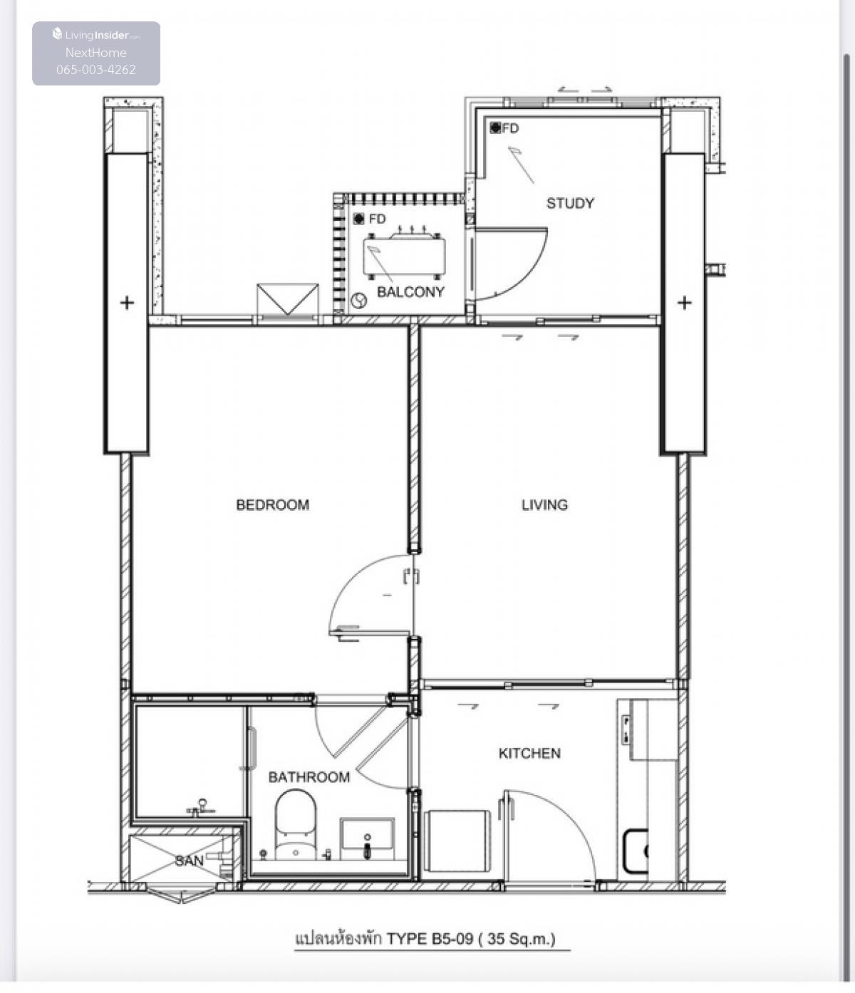 พื้นที่ใช้สอย 34.95 ตร.ม.