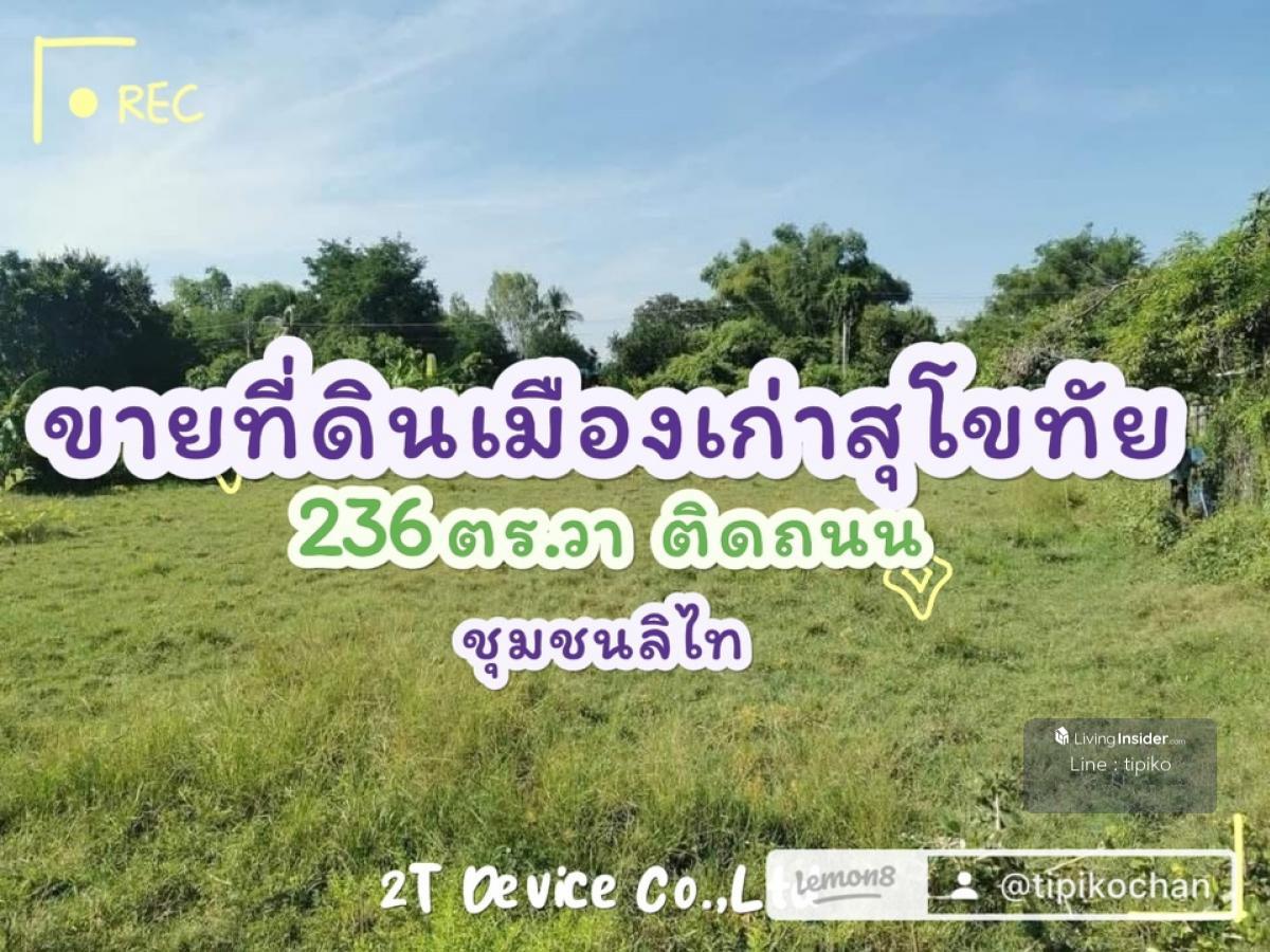 ขายด่วนที่ดินเปล่า 236ตร.วา ชุมชนลิไท อ.เมืองเก่า จ.สุโขทัย ติดถนน น้ำไฟเข้าถึง ✅ขนาดที่ดิน​ 236 ตารางวา ✅โฉนดครุฑแดง​ พร้อมโอน ✅ใกล้ชุมชนลิไท​ น้ำไฟเข้าถึง​ ✅เหมาะสร้าง​ บ้านพักอาศัย​รีสอร์ท ✅โฉนดครุ