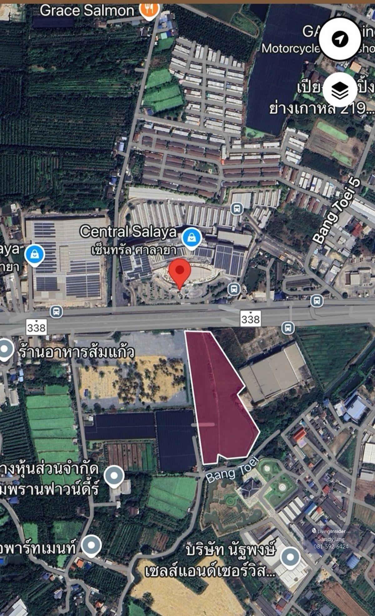 ที่ดินตรงข้ามเซ็นทรัลศาลายา ติดถนนบรมราชชนนี เส้น 338 ฝั่งขาออกจากกรุงเทพ แปลงสวย ทำเลดีมาก ผังสีน้ำตาล จุดเด่น 👉🏻อยู่ฝั่งตรงข้ามห้างเซ็นทรัล 👉🏻ติดถนนทางหลวงสายหลัก เส้น 338 👉🏻ทำเลเดินทางสะดวก 👉🏻รูปแป