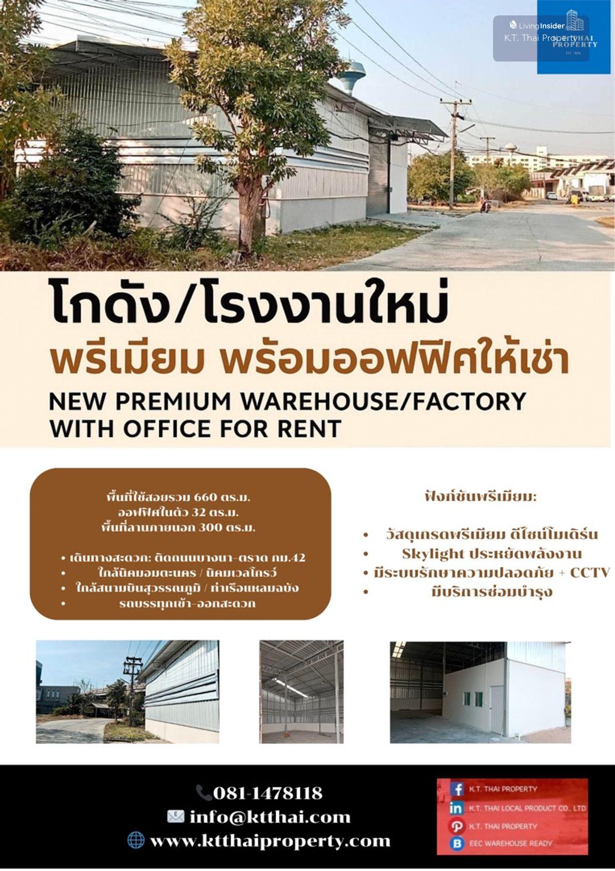 ‼️ #สร้างใหม่ #ยูนิตสุดท้าย เปิดจองแล้ว!!! #LASTUNIT #BOOKNOW New premium factory and warehouse with office for rent size 260 sqm. ให้เช่าโรงงานและคลังสินค้าใหม่พร้อมออฟฟิศ คุณภาพสูง 🇯🇵高品質のオフィスで賃貸するための工場と倉庫。 🇨🇳出租高品质含配套办公室的新工厂和仓库 ให้เช่าโรงงานและคลังสินค้าสร้างใหม่พร้อมออฟฟิศ คุณภาพสูง ขนาด 260 ตรม. ตั้งอยู่ใกล้บางนาตราด กม.42 นิคมอมตะนคร ใกล้สนามบินสุวรรณภูมิ ใกล้ทางด่วน เดินทางสะดวก 🔹พื้นที่ใช้สอยทั้งหมด: 660 ตรม. 🔹พื้นที่อาคารโรงงาน/คลังสินค้า: 260 ตรม. 🔹พื้นที่สำนักงาน: 32 ตรม. 🔹พื้นที่ลานภายนอก: 300 ตรม. รายละเอียดโครงการ โครงการ Factory & Warehouse ออกแบบและก่อสร้างด้วยวัสดุเกรดพรีเมี่ยม ที่สะท้อนความโมเดิร์นผ่านตัวอาคารพร้อมด้วยฟังก์ชั่นที่ครบครันเพื่อผลประกอบการที่ดีของผู้เช่า ✅ More Space การออกแบบที่เน้นพื้นที่การใช้งานที่กว้างขว้างทั้งในส่วนสำนักงาน อาคารโรงงาน/คลังสินค้า พื้นที่ลานภายนอกและที่จอดรถ เพื่อความสะดวกสบายและประสิทธิภาพการทำงานสูงสุดของผู้เช่า ✅ Energy Saving ช่องแสงธรรมชาติ(skylight)ที่ส่องสว่างทั่วอาคารแม้ไม่ได้เปิดไฟ ✅ Smart and Practical Design การออกแบบพื้นที่เพื่อการทำงานได้อย่างมีประสิทธิภาพสูงสุด เช่น ส่วนอาคารโรงงาน/คลังสินค้าที่แยกประตูเข้าออกของสินค้าอย่างชัดเจน อีกทั้งส่วนออฟฟิศที่กั้นห้องและติดตั้งอุปกรณ์ต่างๆไว้ให้อย่างครบครัน เพื่อลูกค้าสามารถเข้าใช้งานได้ทันที ✅ Full Service บริการซ่อมแซมด่วน บริการดูแลสวน และบริการ Pest Control ฟรีตลอดสัญญาเช่า พร้อมทั้งบริการให้คำปรึกษาด้านเอกสารและใบอนุญาตต่างๆ ✅ Full Security System อุ่นใจกับระบบรักษาความปลอดภัย ตลอด 24 ชั่วโมง ระบบออโต้เกทและระบบ CCTV ทั่วโครงการ ✨สร้างเสร็จพร้อมเข้าอยู่มีนาคม 2025 สนใจเข้าชมโครงการหรือสอบถามเพิ่มเติม: 📞 คลิกเพื่อดูเบอร์โทรติดต่อ More info on Line @ : @natree FB: @K.T. Thai propertK.T. Thai Propertyt/) @โกดังให้เช่า คลังสินค้าให้เช่า โรงงานให้เช่า บางนา ริมถนนใหญBangna Warehouse for rent โกดัง บางนา โรงงาน คลังให้เช่า เวลโกรว์ อมตะนครe/ www.ktthai.com/warehouse, www.ktthaiproperty.com, #โกดังบางนา #โกดังให้เช่า #โรงงานให้เช่า #คลังสินค้าให้เช่า #เช่าโกดัง #เช่าโรงงาน #เช่าคลังสินค้า #eec #chachoengsao #rentalwarehouse #warehouseforrent #smefactory #factoryforrent #premium #factoryforrent #warehouseforrent #minifactory #smefactory #highquality #เช่าโรงงาน #เช่าคลังสินค้า #ให้เช่ามินิแฟ๊คตอรี่