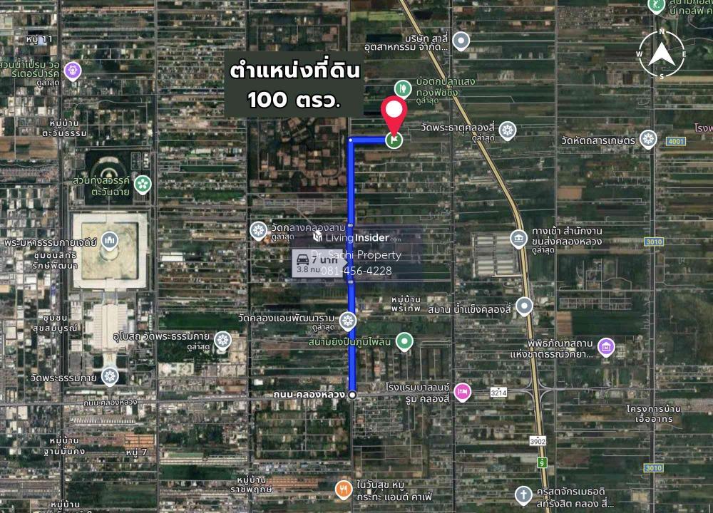 Property ID : M68010 ที่ดินเปล่า ติดถนนคอนกรีต คลองหลวง คลองสี่ ใกล้ ถ.กาญจนภิเษก - เนื้อที่ 100 ตรว. - ที่ดิน กว้าง 14 ม. ลึก 28.5 ม. โดยประมาณ - ที่ดินหันหน้า ทิศใต้ ติดถนนคอนกรีต ยาว 14 ม. ---------------------------------------------------------- : : ลักษณะเด่น : : - ทำเลดี เดินทางสะดวก ติดถนนคอนกรีต ใกล้แหล่งชุมชน - เหมาะสำหรับทำที่พักอยู่อาศัย, โกดัง ---------------------------------------------------------- สถานที่ตั้ง : : (ระหว่าง ซ.คลองสี่ตะวันตก 24, 25) ต.คลองสี่ อ.คลองหลวง จ.ปทุมธานี 12120 Google Map : : https://maps.app.goo.gl/QFJkTiKyHgTndeLs6 ---------------------------------------------------------- : : สถานที่สำคัญใกล้เคียง : : - ตลาดแพปลา คลอง 4 - สำนักงานขนส่ง คลองหลวง - ฟิวเจอร์พาร์ค รังสิต - Lotus คลอง4, Big C, Home Pro - ตลาดไท, ตลาดไอยรา, ตลาดสี่มุมเมือง - รร.สวนกุหลาบรังสิต - ม.ธรรมศาสตร์ รังสิต - ม.กรุงเทพ รังสิต - ม.ราชมงคล คลอง6 - ม.นอร์ทกรุงเทพ - ม.อีสเทิร์นเอเชีย - สวนสนุกดรีมเวิลด์ ------------------------------------------------ ราคาขาย : : 1,100,000 บาท (11,000 บาท/ตรว.) (ค่าโอน 50/50) ------------------------------------------------ : : สอบถามรายละเอียดเพิ่มเติม ติดต่อ : : Tel : คลิกเพื่อดูเบอร์โทรติดต่อ (อ้อม) LINE ID : dr.sachiproperty LINE OA : @dr.sachiproperty (มี @ นำหน้า) Facebook : Dr. Sachi Property