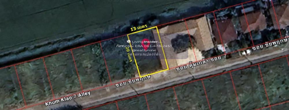 -ขายที่ดินเปล่าถมแล้ว 65 ตร.ว. ม.ชัยพฤกษ์ 1 ซอยคุ้มเกล้า 7 แขวงลำปลาทิว เขตลาดกระบัง กรุงเทพฯ -โครงการคุณภาพ แลนด์แอนด์เฮาส์ -ที่ดินหน้ากว้าง 13 เมตร ลึก 20 เมตร -ถนนหน้าที่ดินกว้าง 6 เมตร ,หน้าแปลงที่ดินหันหน้าไปทางทิศใต้ - เหมาะสร้างบ้านอยู่อาศัย สิ่งอำนวยความสะดวกในโครงการ -สระว่ายน้ำ ,สวนส่วนกลาง ,รปภ. 24 ชม. สถานที่สำคัญใกล้เคียง -เข้าออกได้ทั้งด้านถนนคุ้มเกล้า ถนนเจ้าคุณทหาร และถนนสุวินทวงศ์ -สนามบินสุวรรณภูมิ, สถาบันเทคโนโลยีพระจอมเกล้า เจ้าคุณทหารลาดกระบัง -โรงเรียนสารสาสน์วิเทศร่มเกล้า ,โรงเรียนนานาชาติ RIS - ใกล้ตลาดบึงบัว – ศูนย์กีฬาเฉลิมพระเกียรติ – สนามแบดมินตัน S11 – สถานีตำรวจฉลองกรุง – สถานีตำรวจคุ้มเกล้า – วิทยาลัยเทคนิคกาญจนาภิเษกมหานคร ** สนใจติดต่อ คุณ กัลฑภรณ์ คลิกเพื่อดูเบอร์โทรติดต่อ ** Line ID: @realtynine , สนใจนัดหมายชมทรัพย์ล่วงหน้า 1 วันค่ะ** ***รับฝากขาย เช่า บ้าน ที่ดิน คอนโด และอสังหาฯ ทุกประเภท กรุงเทพและปริมณฑล*** *** ทำการตลาดให้ฟรี โดยทีมงานมืออาชีพ มากประสบการณ์ 30 ปี ***