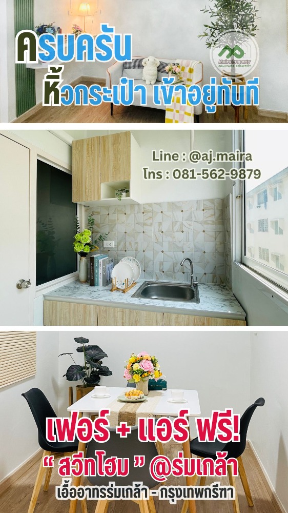 🎉 เป็นเจ้าของห้องชุดรีโนเวทใหม่ #อยู่เองก็ฟิน #ปล่อยเช่าก็คุ้ม #เอื้ออาทรร่มเกล้า #เราดูแลจบครบวงจร❗️สลิป + อายุงาน 1 ปี + เครดิตดี 🎉 . พร้อมเข้าอยู่ #ห้องสวยๆ มาให้จองแล้วจร้า ....#จองให้ทันน้า...❗️เริ่มต้นผ่อนเพียง 2,xxx., #จ่ายสดรับส่วนลดของแถมค่ะ ❗️ . #รีโนเวทใหม่ สไตล์มินิมอล ➕ โมเดิร์น พร้อมเข้าอยู่ 🌿 . ❇️ เพียงมีสลิปเงินเดือน 15,XXX บาท ➕ อายุงาน 1 ปี … ไม่ติดเครดิตบูโร ก็สามารถเป็นเจ้าของ ผ่อนถูกกว่าเช่า หรือสนใจเป็น " นักลงทุนอสังหา " #เสือนอนกิน " เรามีผู้เช่าพร้อมเสริฟ❗️#ดูแลจบครบวงจร . . 🌺 #อนุมัติง่าย #อนุมัติไว ไว้ใจให้ อ.ไมร่า ดูแลจัดสินเชื่อ . 🌺 เรามีบริการจัดหาผู้เช่า + ทำสัญญาเช่า และแนะนำการดูแลและบริหารผู้เช่า ด้วยทีมงานมืออาชีพ เพื่อให้คุณเป็นนักลงทุนง่ายขึ้น เกษียณได้เร็วขึ้น 🎉 . . ทำเลดี ใกล้รถไฟฟ้า ใกล้สนามบิน โครงการ #เอื้ออาทรร่มเกล้า #รีโนเวทใหม่ #ฟีลคอนโด #คอนโดใกล้รถไฟฟ้า #สายสีส้ม #สายสีชมพู บนถนน #ร่มเกล้า . ✅ ใกล้ #สนามบินสุวรรณภูมิ 10 นาที เดินทางสะดวก เข้า - ออก ได้หลายเส้นทาง ✅ ใกล้ #นิคมลาดกระบัง 10 นาที ✅ ใกล้ #BigC ร่มเกล้า 5 นาที ✅ ใกล้ #7Eleven 2 นาที ✅ ใกล้ #ตลาดเกรียงไกร . 🏠 #คอนโดเอื้ออาทรร่มเกล้า #เอื้ออาทรร่มเกล้า #คอนโดเงินเหลือ . #รีโนเวทใหม่ สไตล์อ.ไมร่า อบอุ่น อบอวลด้วยความสุขทุกครั้งที่กลับถึงบ้าน ... #พลังงานดี #พร้อมเข้ามาชมได้ทุกวันคะ . . 1️⃣ รีโนเวทใหม่ทั้งห้อง ทาสี ปูกระเบื้องใหม่ ทั้งภายนอกและภายใน 2️⃣ พื้นปูไวนิล SPC ลายไม้ ปลอดภัย ไร้สารเคมี กันปลวก กันไฟ กันชื้น 3️⃣ ใช้สี TOA กึ่งเงา ทั้งภายนอก และภายใน 4️⃣ ห้องน้ำเปลี่ยนใหม่ทั้งหมด 5️⃣ เฟอร์นิเจอร์ งานไม้ ทั้งห้องอาหาร, ห้องครัว, ห้องนอน และห้องนั่งเล่น 6️⃣ บิวท์อินโดยช่างทีมงานมืออาชีพ 7️⃣ เปลี่ยนหน้าต่าง เป็นกระจกบานสไลด์ เก็บเสียง วิวสวย 8️⃣ ฟรี เหล็กดัด มุ้งลวด พร้อมมูลี่ . ฟรี ‼️#บิวท์อิน รีโนเวท ใหม่หมด ทั้งห้อง . ‼️#ฟรี ‼️ แอร์ 12000 BTU เย็นฉ่ำ* . . พื้นที่ใช้สอย 33.3 ตารางเมตร 1 ห้องนอน 1 ห้องรับแขก 1 ห้องครัว 1 ห้องน้ำ . 📍ทำเลใกล้ 7-11 ใกล้รถโดยสาร 📍ใกล้ JJ Mall 📍ใกล้ตลาดโครงการเอื้ออาทร #ตลาดเกรียงไกร 📍ใกล้ถนนตัดใหม่ศรีนครินทร์ - ร่มเกล้า #เอื้ออาทรร่มเกล้า #เอื้ออาทร #เอื้ออาทรสุวรรณภูมิ #เอื้ออาทรมีนบุรี #เอื้ออาทรบึงกุ่ม #เคหะร่มเกล้า #คอนโดมีนบุรี #คอนโดร่มเกล้า #คอนโดติดรถไฟฟ้า . ราคาเริ่มต้นเพียง 729,000 บาท สนใจ สอบถามได้ที่ . 🔽สอบถามรายละเอียดเพิ่มเติม 🔽 💚Line : @aj.maira หรือคลิก https://lin.ee/rQHarF1 📱Tel : คลิกเพื่อดูเบอร์โทรติดต่อ